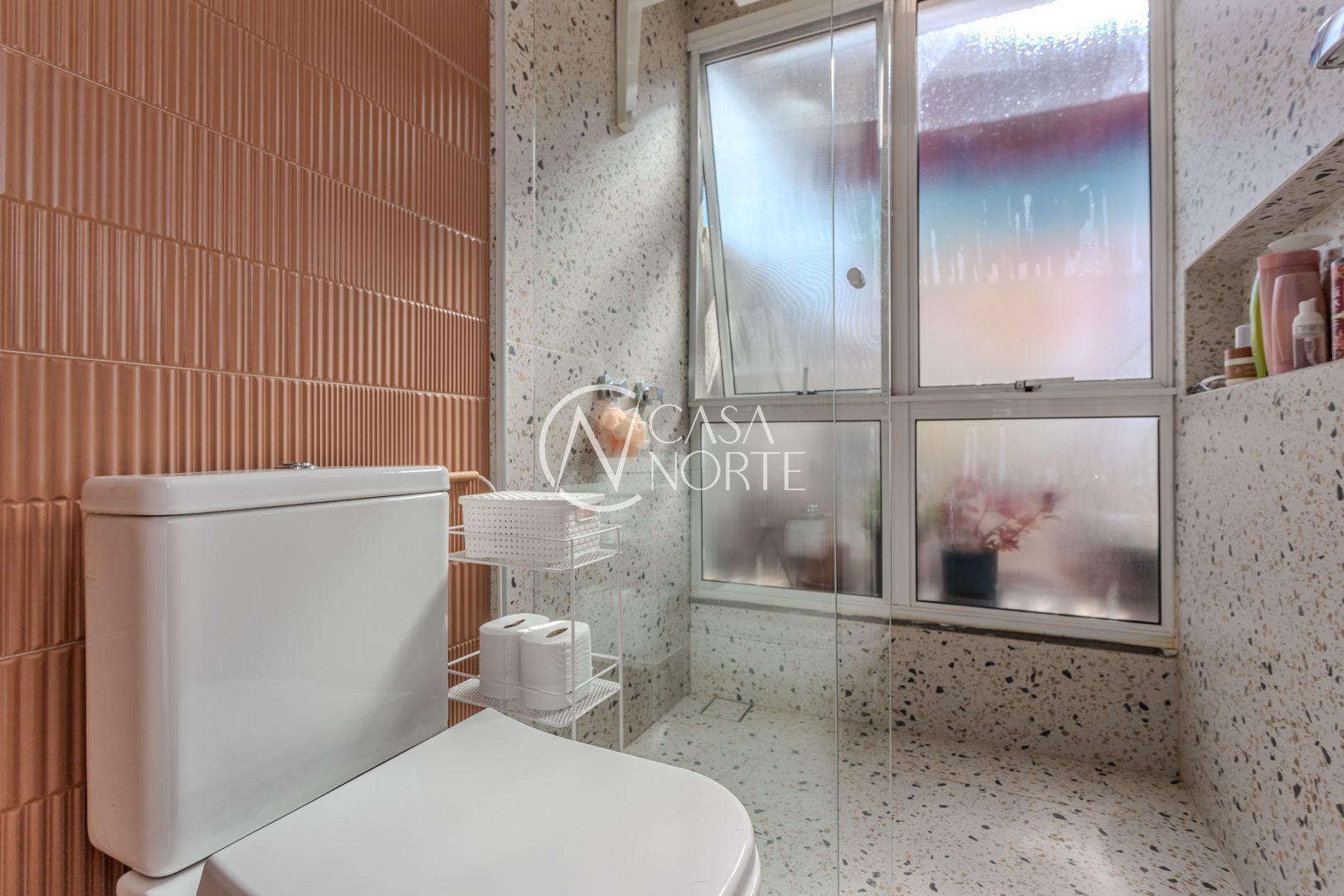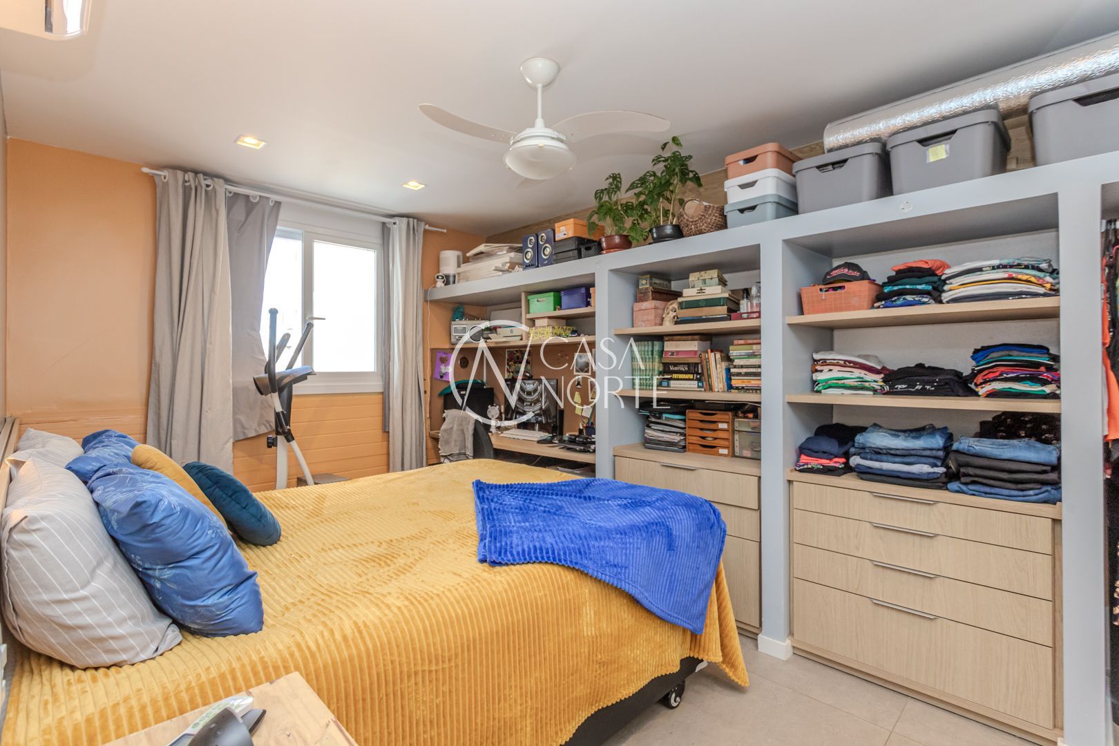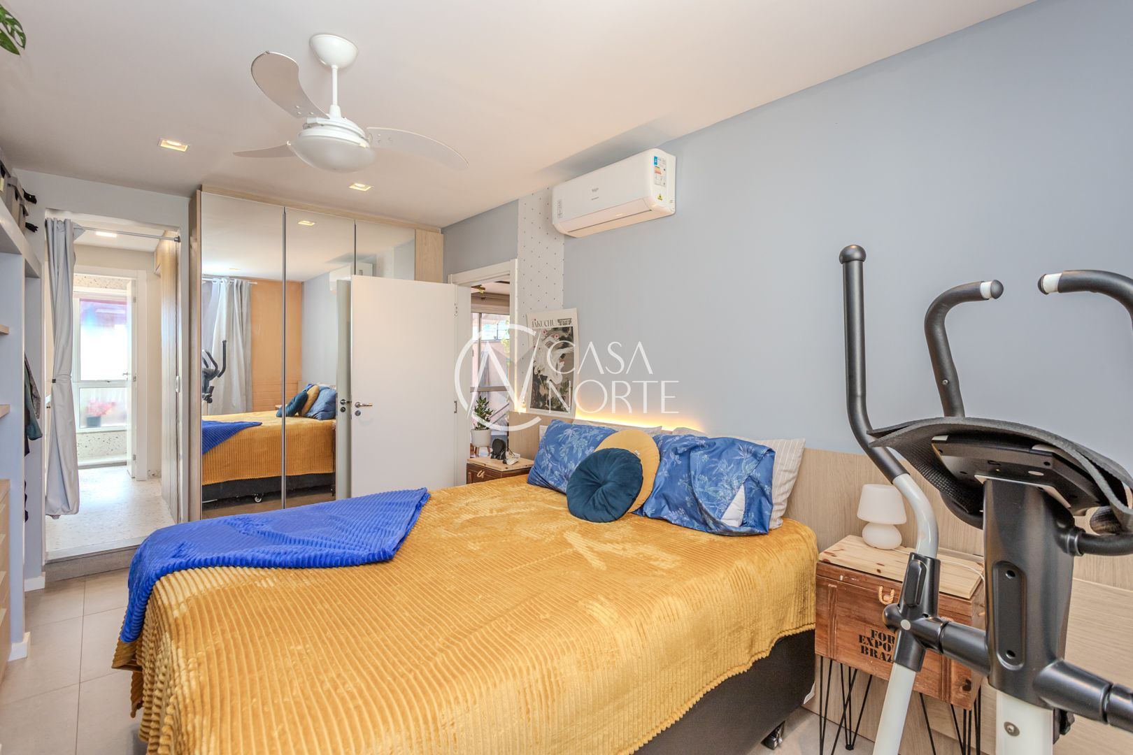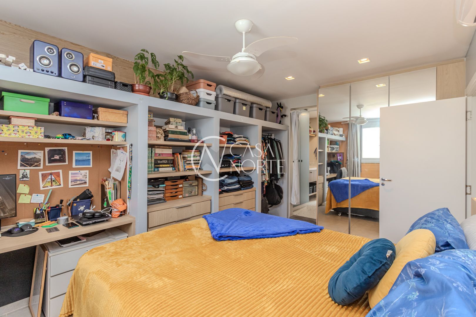 Cozinha planejada integrada à ampla sala utilizada como Estudio. Quarto com móveis sob medida no segundo piso. Sala integrada à copa e ao terraço na cobertura. Instaladas janelas anti-ruído.