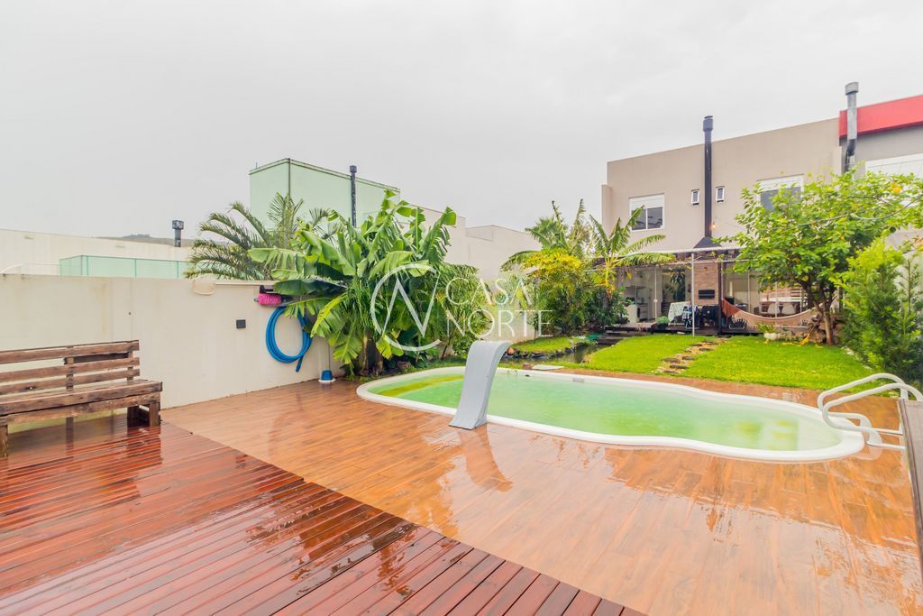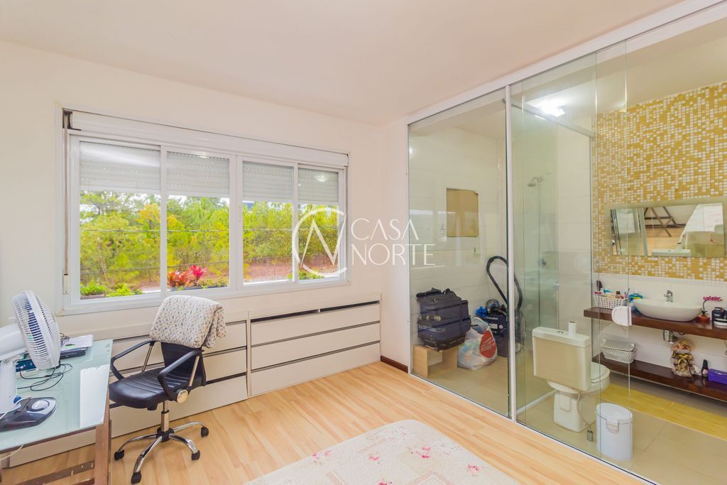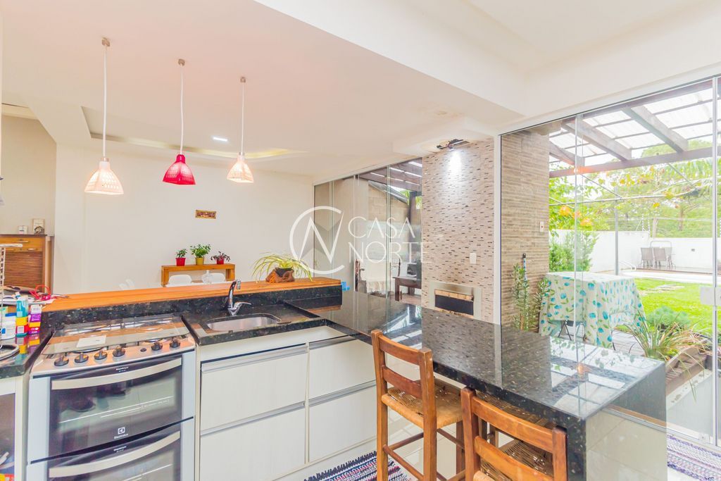Belíssima casa em condomínio fechado, com 270 m², cercada por muito verde e tranquilidade. Possui living espaçoso para dois ambientes com lareira, 3 dormitórios (sendo 1 suíte com closet), banheiro social e lavabo.