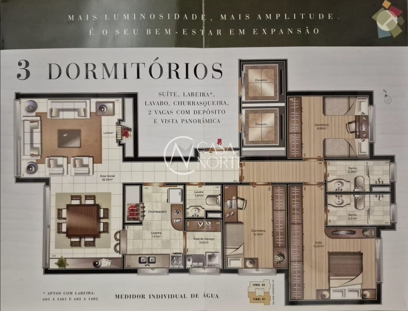 A orientação solar leste, norte e oeste proporciona excelente iluminação natural ao longo do dia.