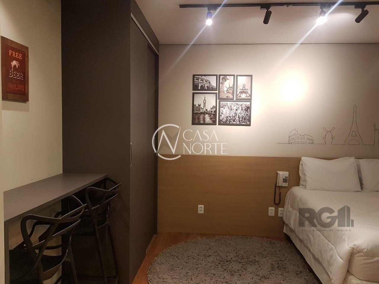 Loft no Century Park Living, na melhor região da Cidade Baixa de Porto Alegre. Ele é totalmente mobiliado e está pronto para te receber com cama de casal, ar condicionado split, cooktop 2 bocas, frigobar, micro-ondas, cafeteira, utensílios de cozinha, bancada para trabalho com cadeiras, sofá, smart TV, Wi-fi, Cokitchen, Coworking, academia, bicicletário, lavanderia, sala de jogos, mini mercado self-service, terraço incrível, elevadores e estacionamento (consulte valores e disponibilidade).