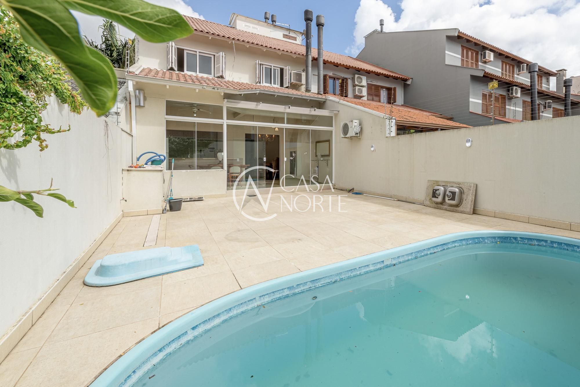 O primeiro pavimento oferece living para 2 ambientes com lareira, lavabo, cozinha americana planejada com sala de jantar e churrasqueira. Pátio amplo com jardim e piscina.