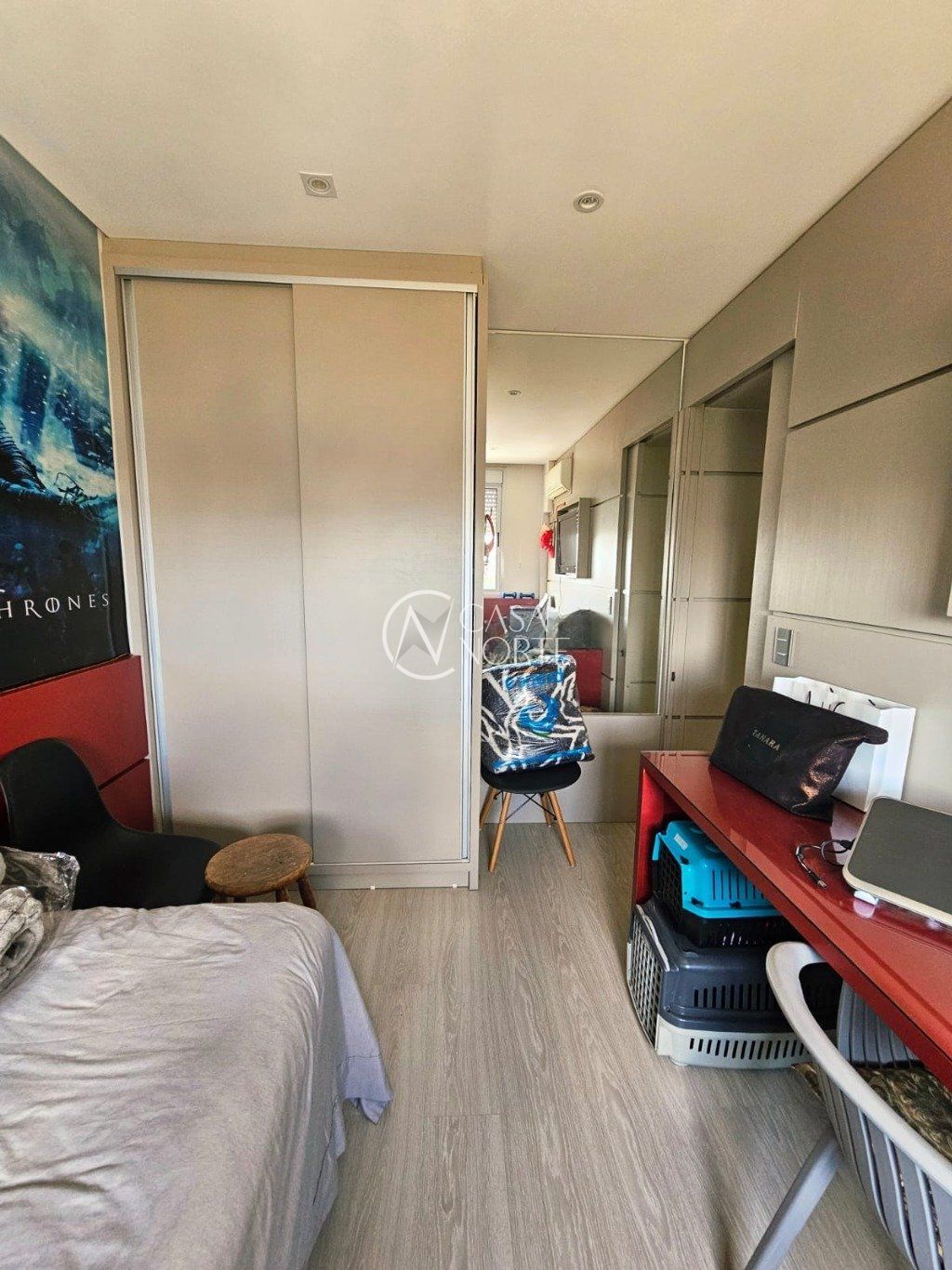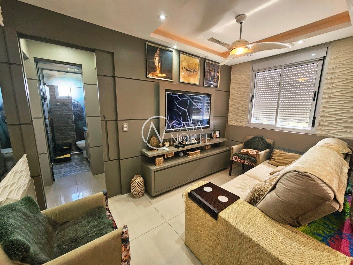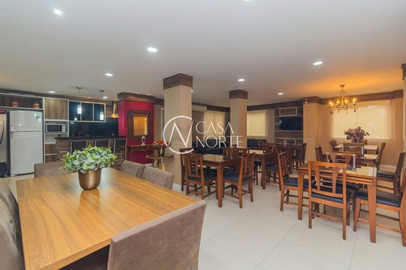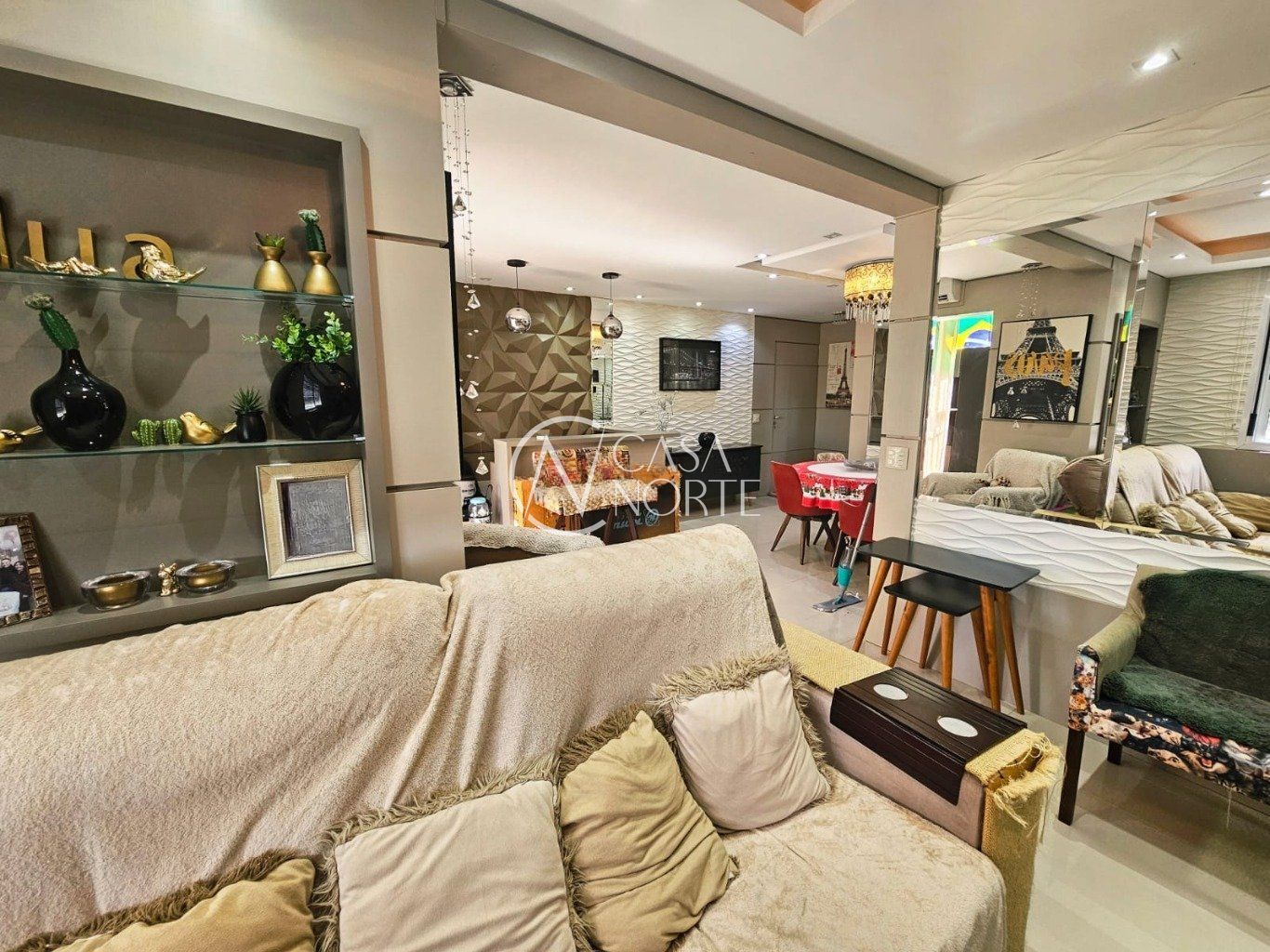 Sala ampla com três ambientes, sacada integrada e churrasqueira. Planta original de 3 dormitórios, sendo 1 suíte com closet. Atualmente, dois dormitórios estão integrados ao living, formando um espaço estendido, com reversão simples. Conta ainda com banheiro social, lavabo, cozinha e área de serviço.