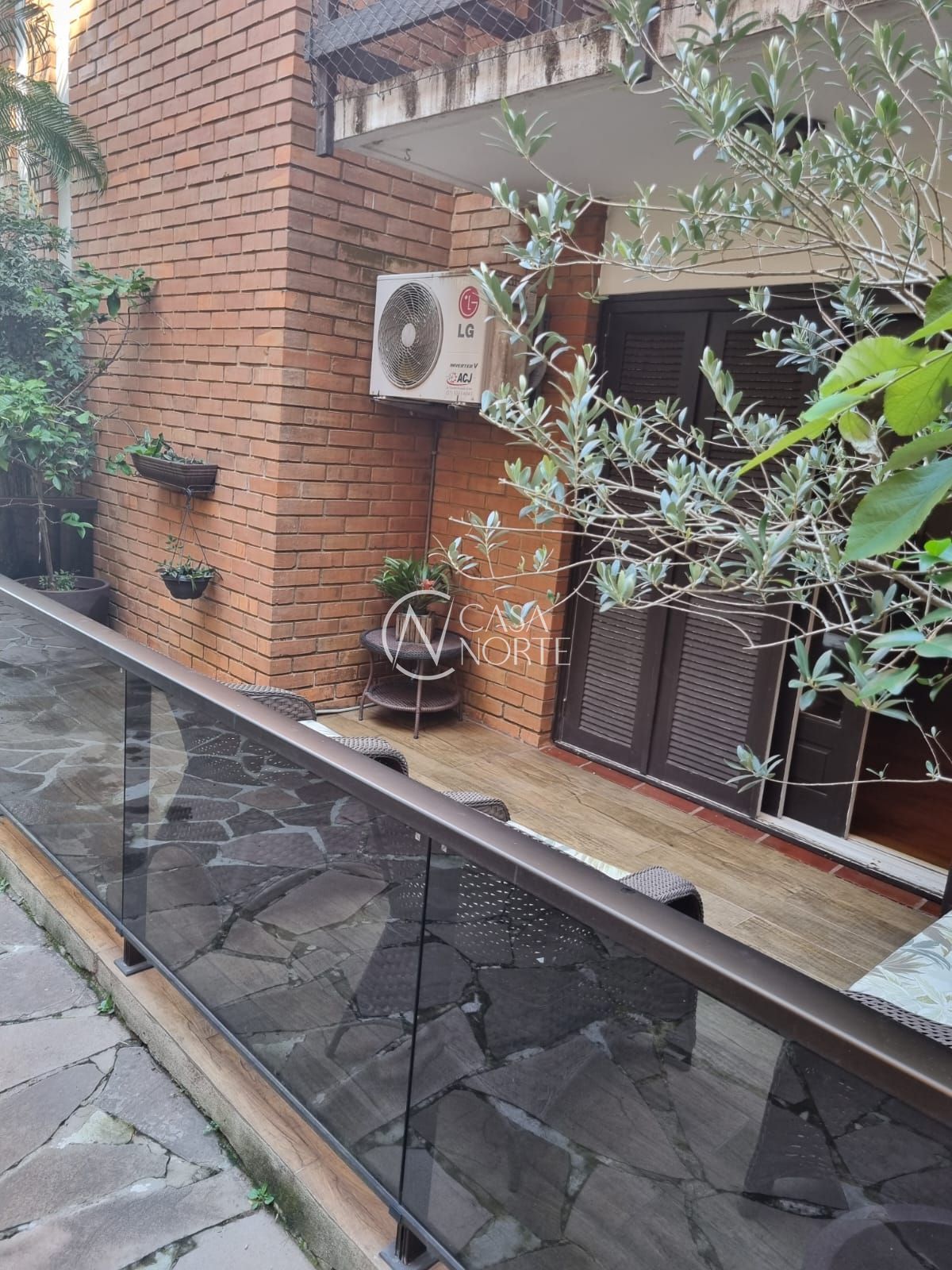 Apartamento térreo semi mobiliado de 3 dormitórios, churrasqueira, lareira, duas vagas no bairro Cristal.