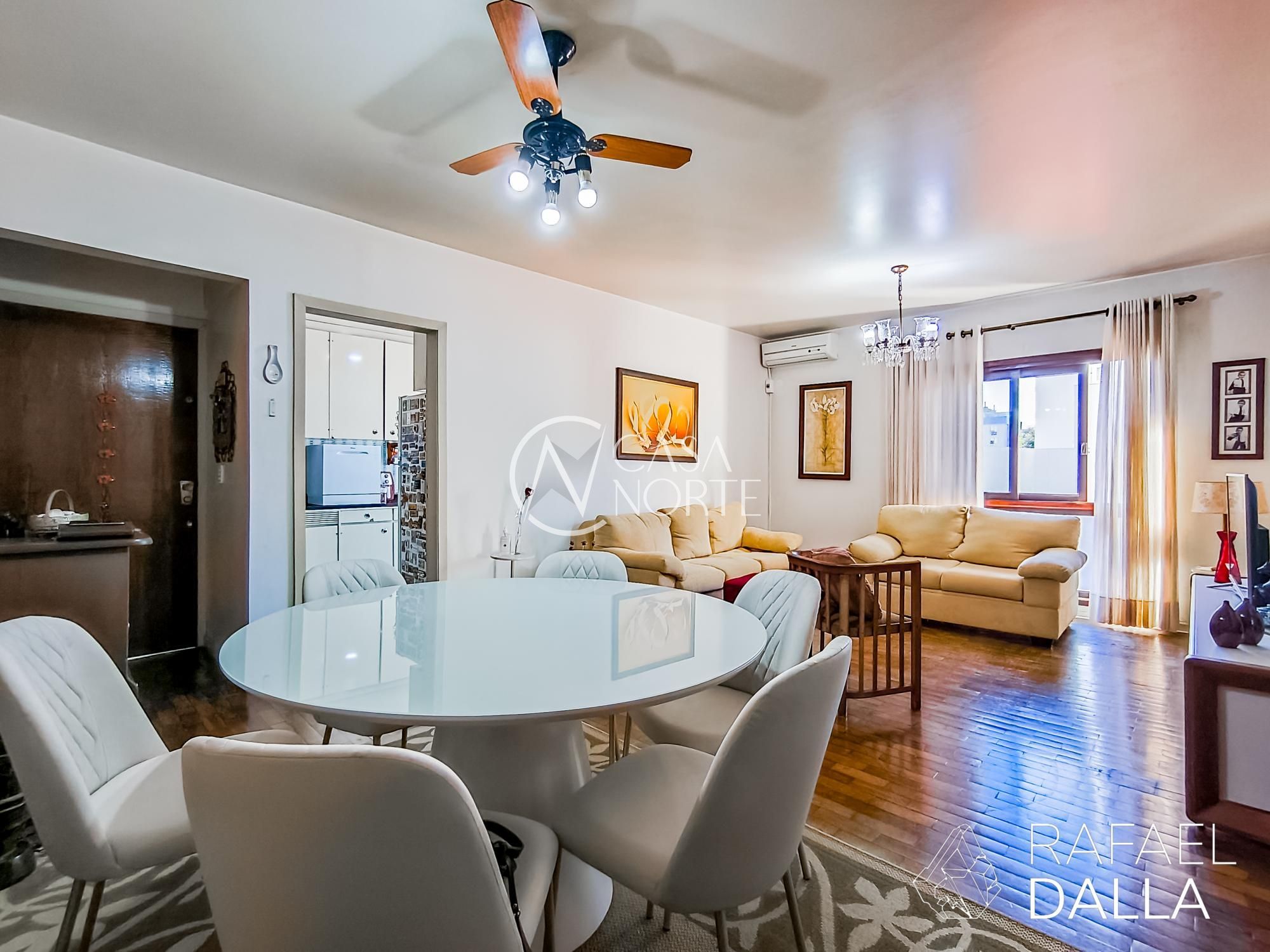Apartamento de frente, com planta generosa e bem distribuída. São 115m² privativos, com living para dois ambientes, três dormitórios (um deles suíte), banheiro social amplo com ventilação natural, cozinha espaçosa e dependência completa transformada em escritório. Área de serviço maior do que o habitual e banheiro auxiliar. Imóvel ensolarado, bem ventilado, com ótima conservação e ideal para quem deseja modernizar com personalidade. A unidade conta com uma vaga de garagem coberta e escriturada.