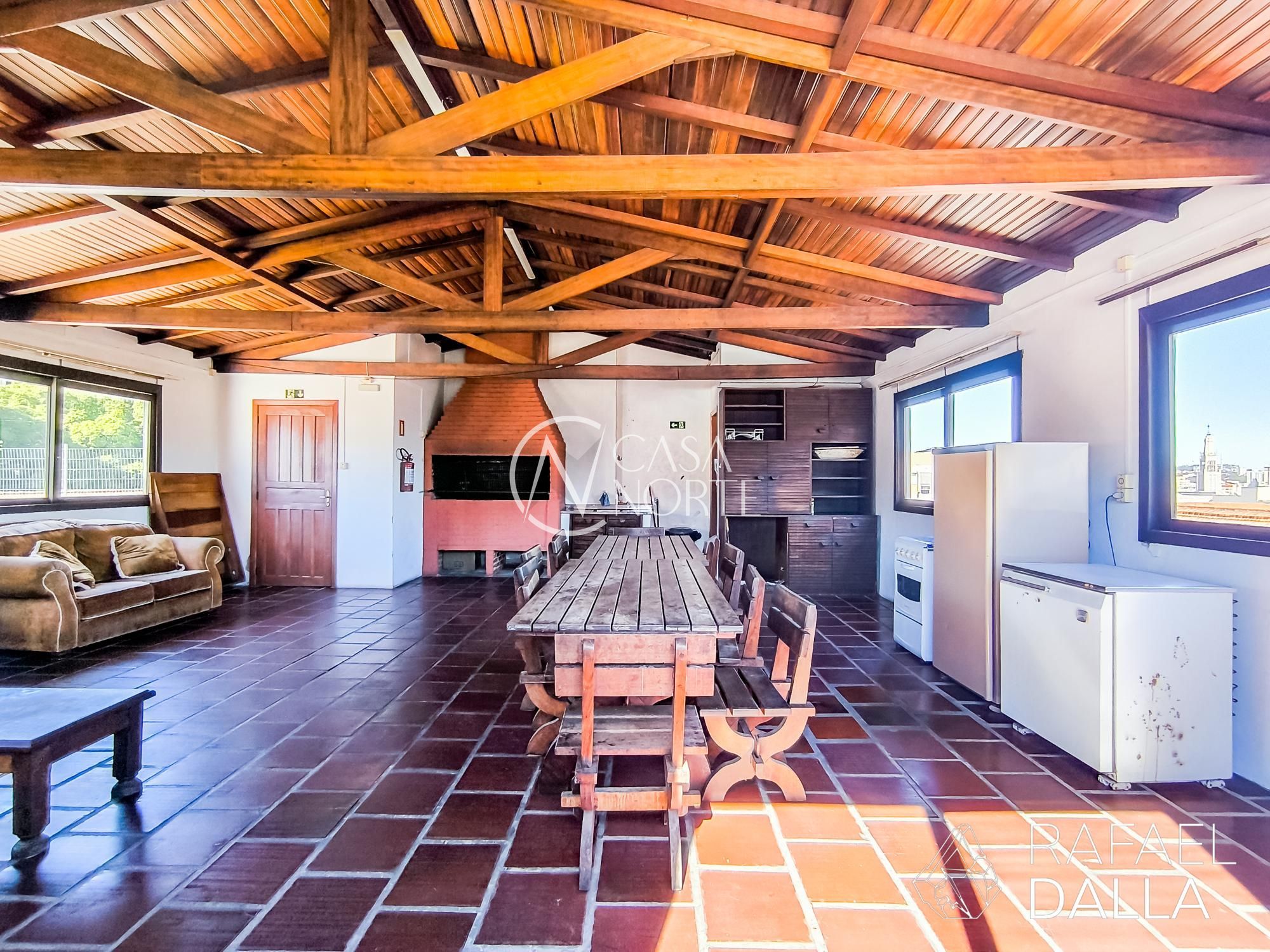Edifício bem mantido, com dois elevadores, gás central, salão de festas com churrasqueira e um terraço com vista panorâmica no 6º andar, além de portaria 24 horas e zeladoria.