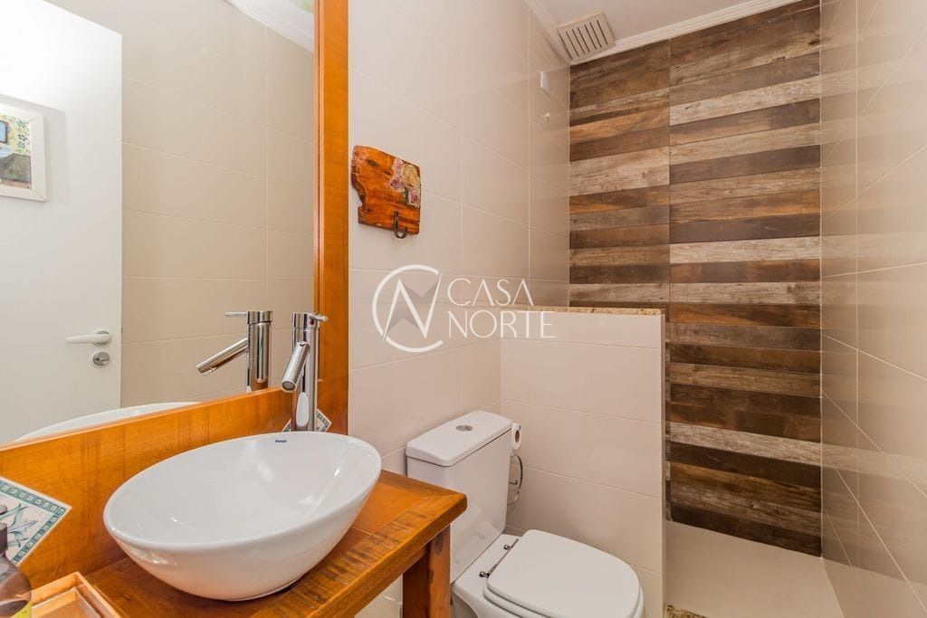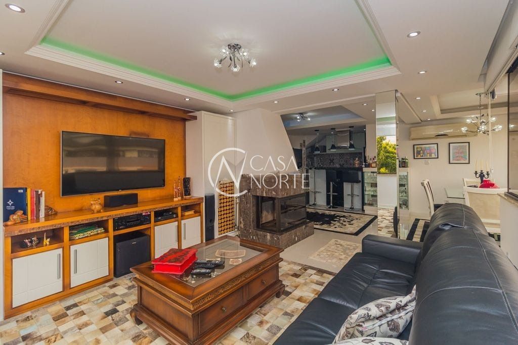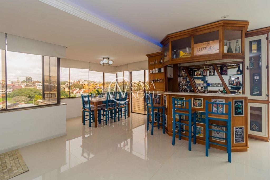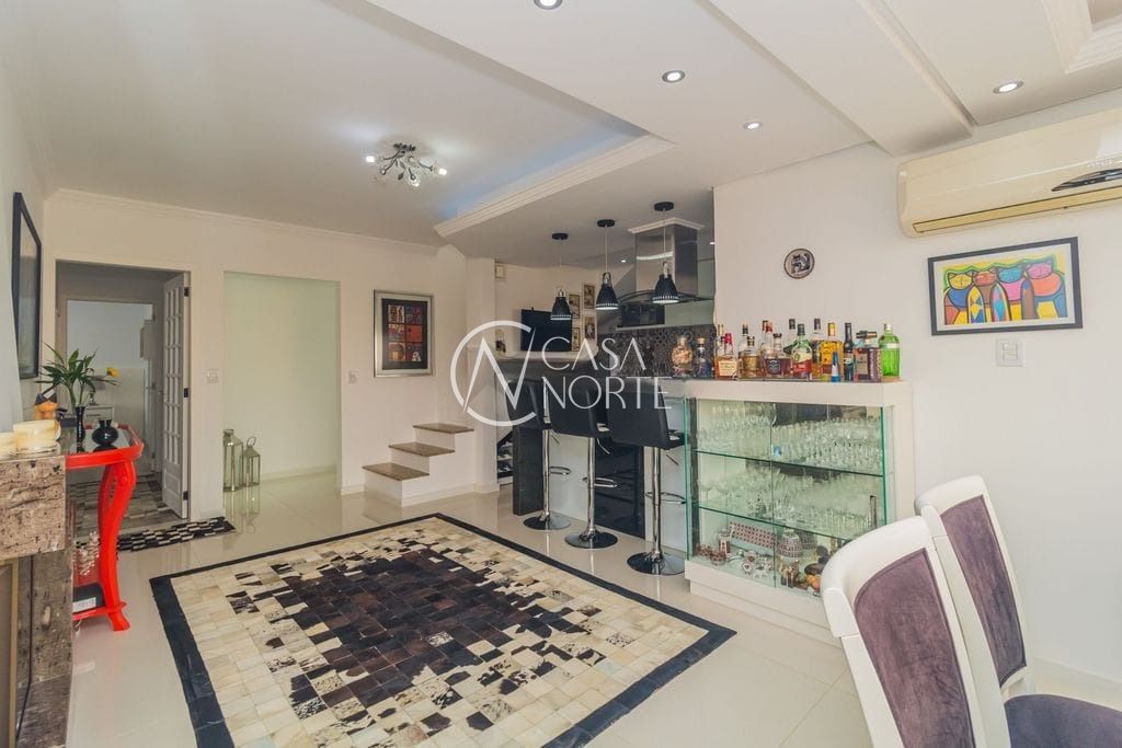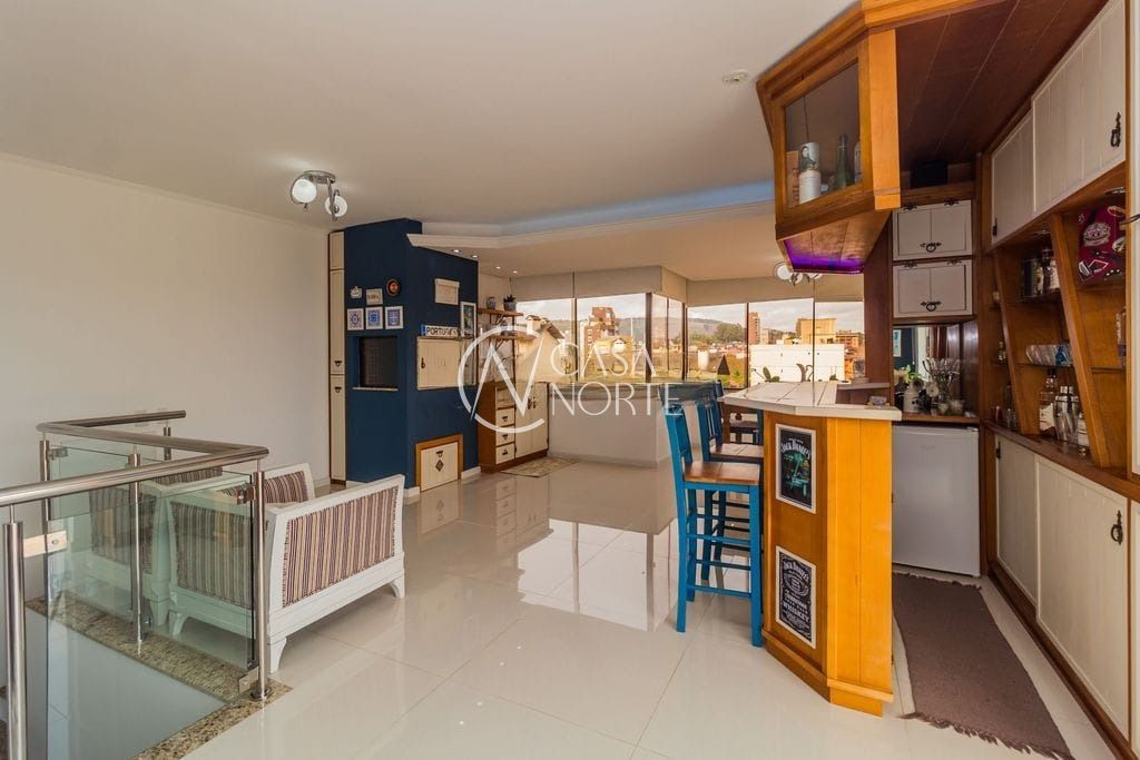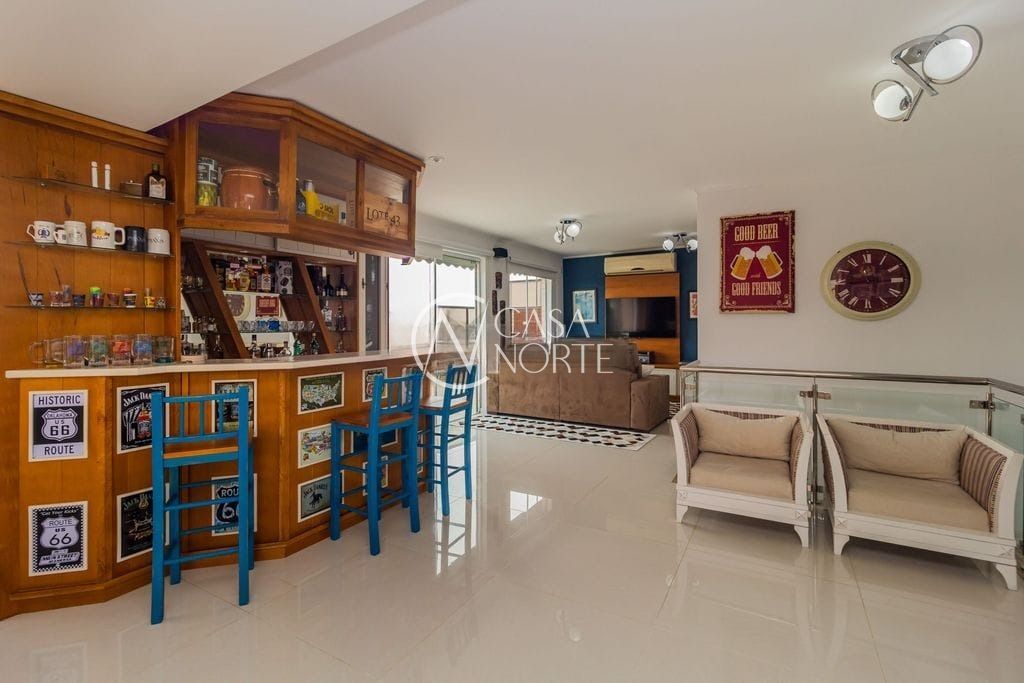 No pavimento superior, o destaque fica por conta do amplo espaço em conceito aberto, perfeito para receber amigos e familiares. O ambiente conta com sala de estar e jantar integradas, bar, churrasqueira e lavabo, além de três dormitórios.