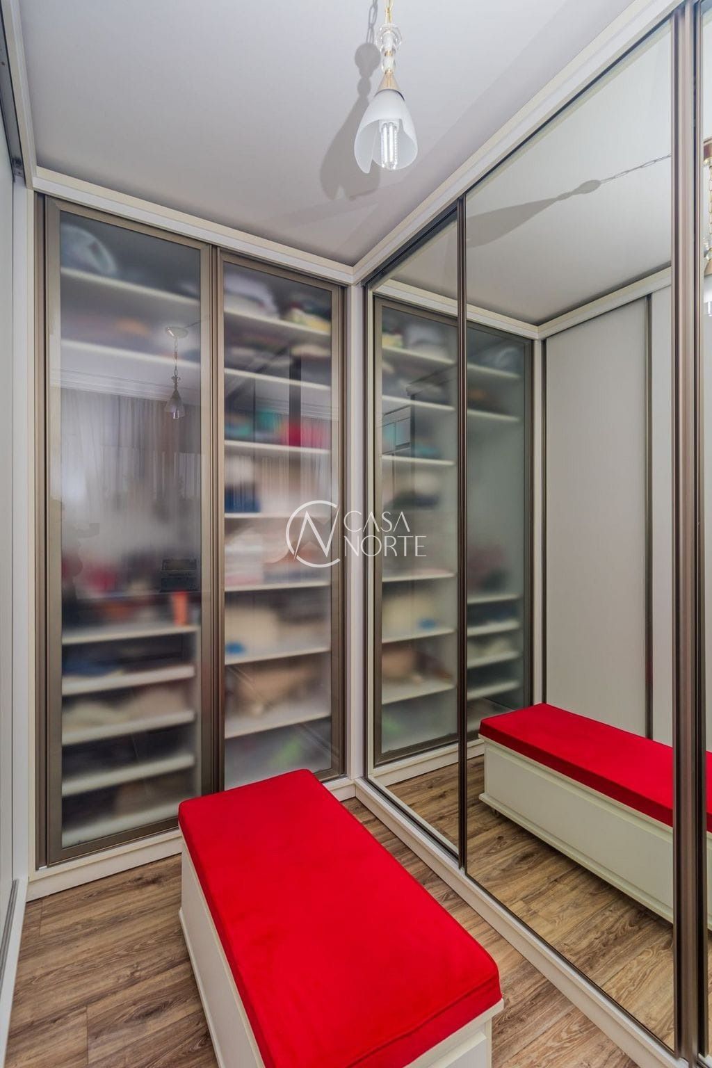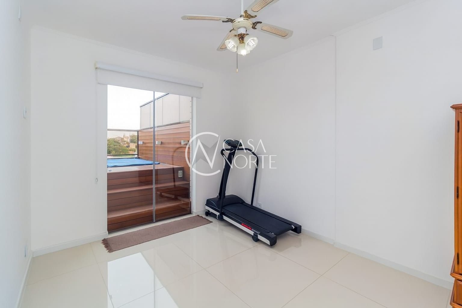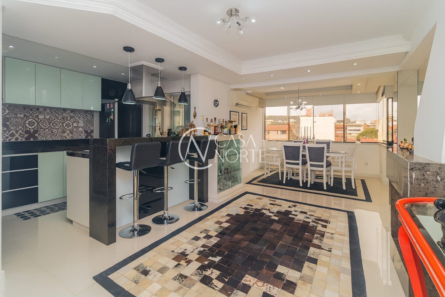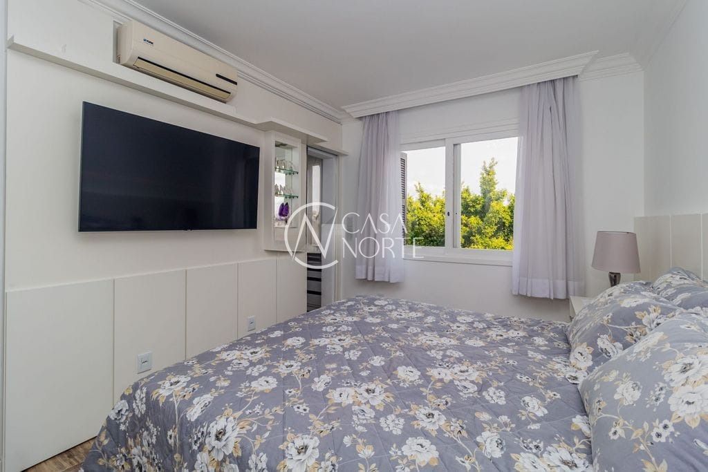 No pavimento superior, o destaque fica por conta do amplo espaço em conceito aberto, perfeito para receber amigos e familiares. O ambiente conta com sala de estar e jantar integradas, bar, churrasqueira e lavabo, além de três dormitórios.