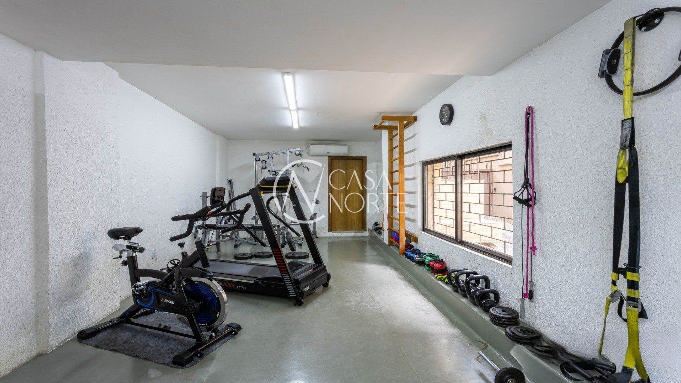 No pavimento superior, o imóvel dispõe de um excelente espaço social, com possibilidade de sala de estar e TV com lareira, sala de jantar, espaço gourmet integrado e banheiro social, além da possibilidade de criação de um dormitório adicional. Conta ainda com amplo terraço, piscina de ótimo tamanho, muito ensolarada, e churrasqueira, oferecendo conforto e lazer ao novo morador.