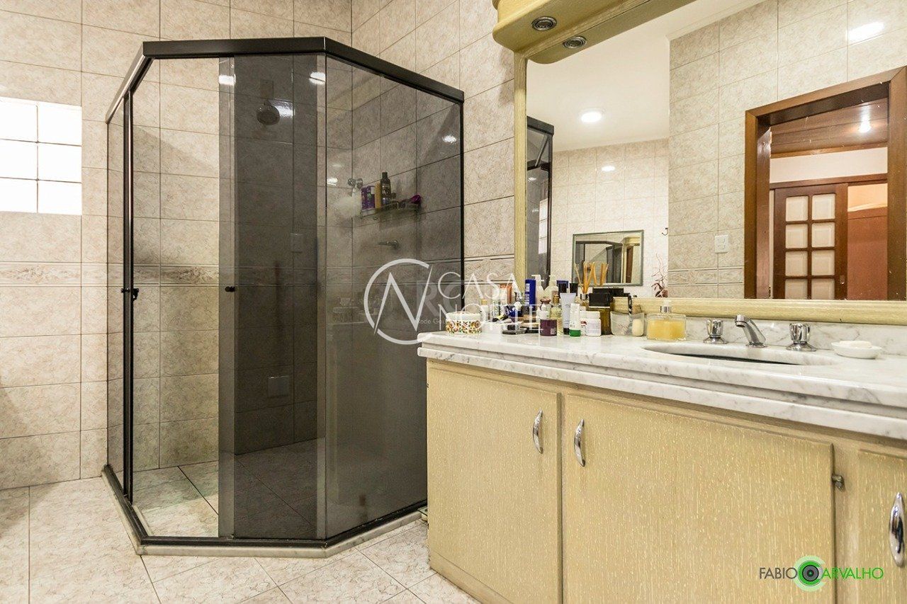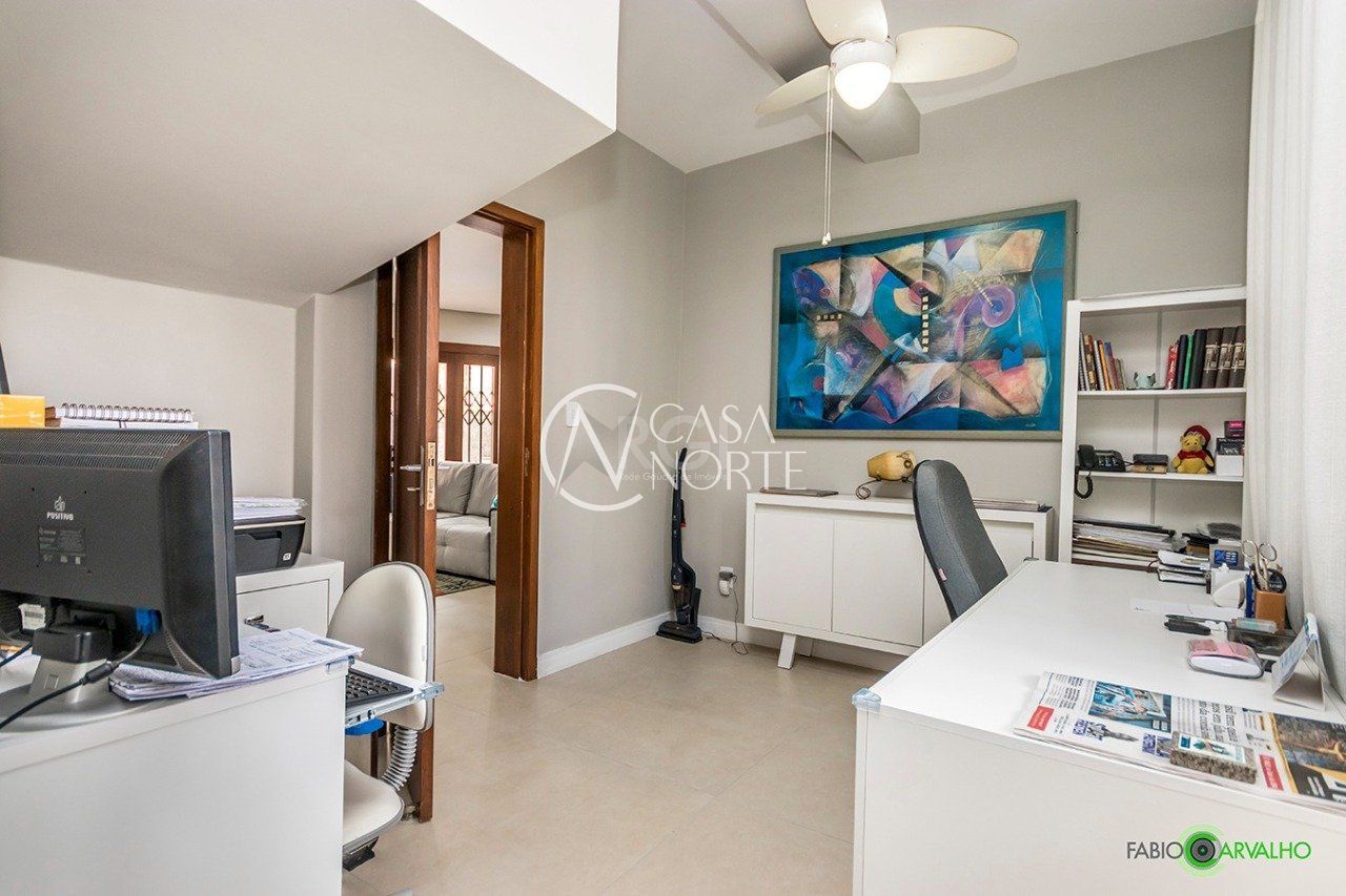 Excelente sobrado com 335 m² de área privativa, quatro quartos, escritório, cozinha, duas salas, área de serviço, lavabo, lavanderia, três banheiros e três vagas de estacionamento, sendo duas cobertas na garagem e uma descoberta.