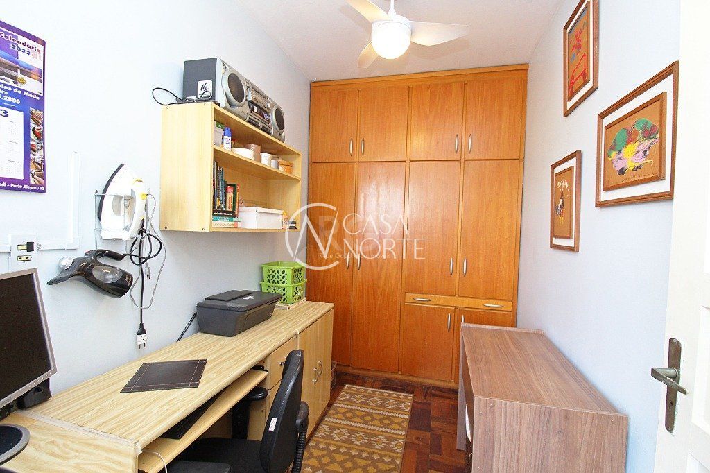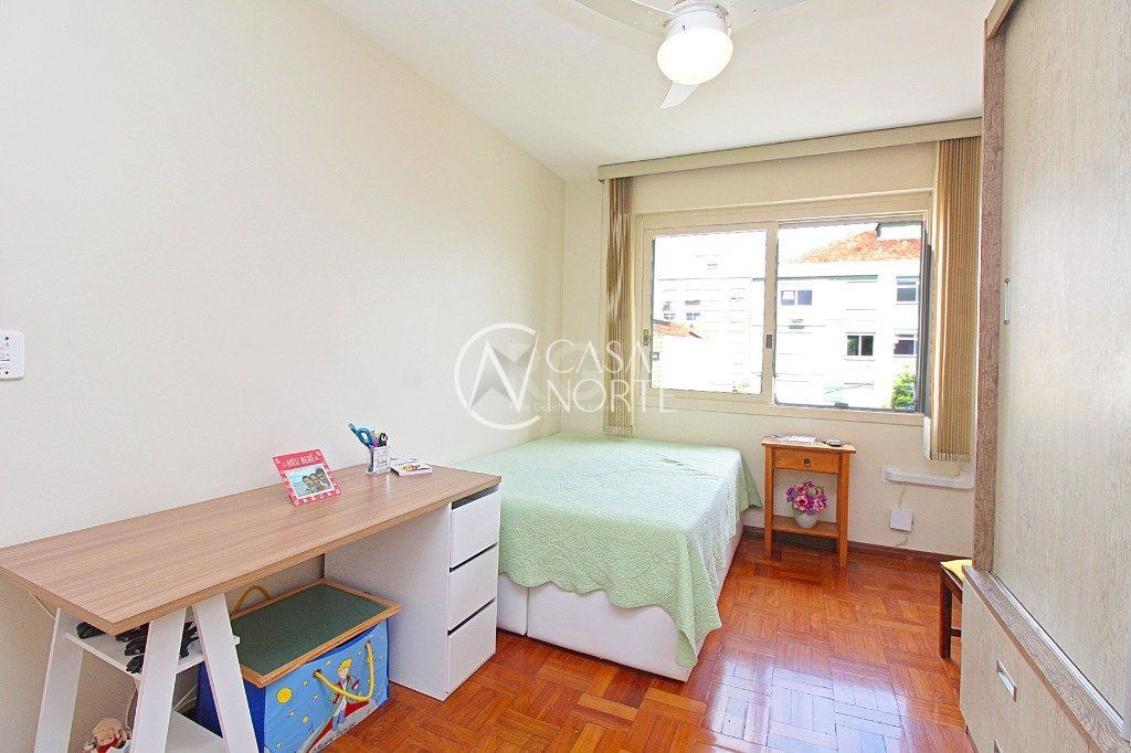 Vende-se apartamento reformado, climatizado, 3 dormitórios, banho social, ensolarado, copa e cozinha, área de serviço independente, dependência de empregada, banheiro auxiliar, living amplo em 2 ambientes amplos e com lareira. Permanecem todos os móveis fixos.