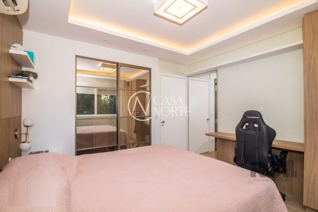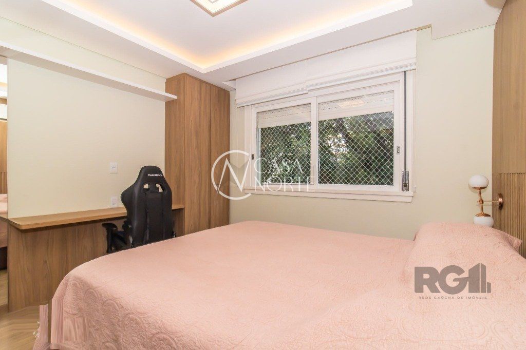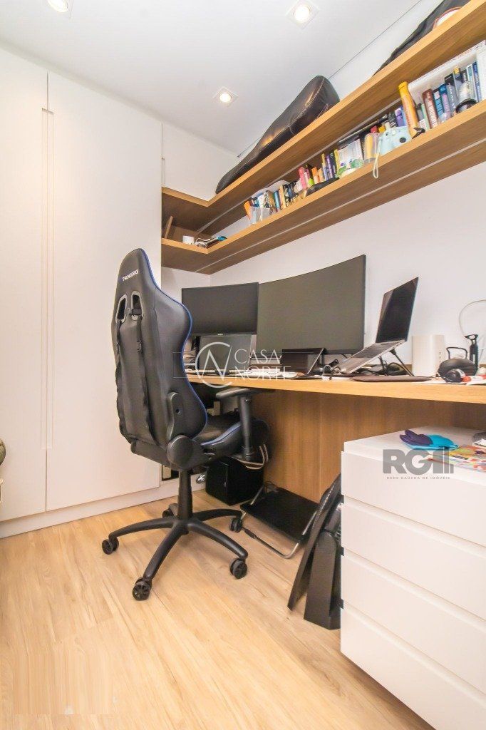 Apartamento impecável, totalmente reformado, com 3 dormitórios, incluindo uma espaçosa suíte, vaga coberta e escriturada, além de um banheiro social moderno. A cozinha americana, com móveis sob medida de excelente qualidade, integra-se ao amplo living de dois ambientes, proporcionando um espaço acolhedor para o convívio familiar e social. A área de serviço é separada, garantindo mais praticidade, e o imóvel conta ainda com um home office, ideal para trabalho remoto ou estudo.