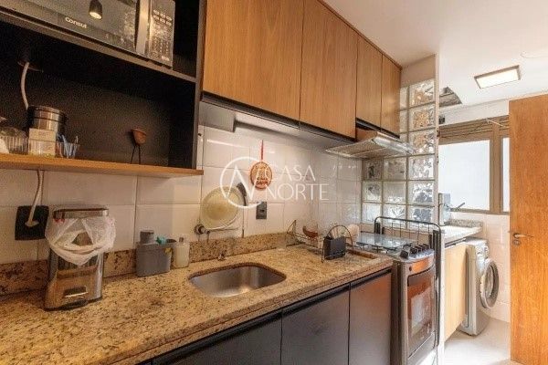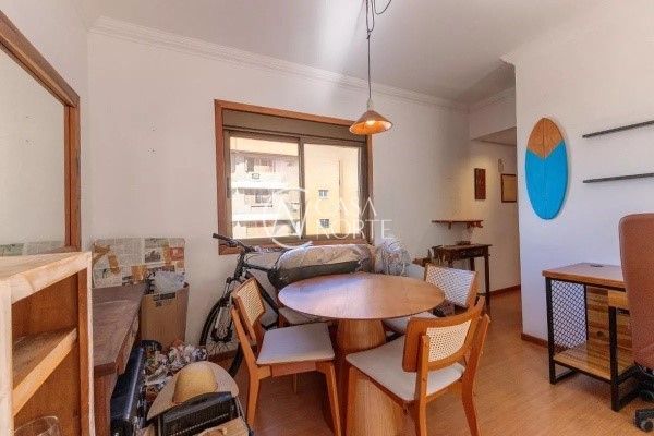 Apartamento com 73 m² privativos, muito bem distribuídos em 2 dormitórios (sendo 1 suíte), living iluminado, churrasqueira, cozinha com armários, banheiros com ventilação natural e área de serviço. Possui piso laminado, aquecedor de água a gás (Junker), splits instalados e excelente orientação solar, recebendo sol da manhã.