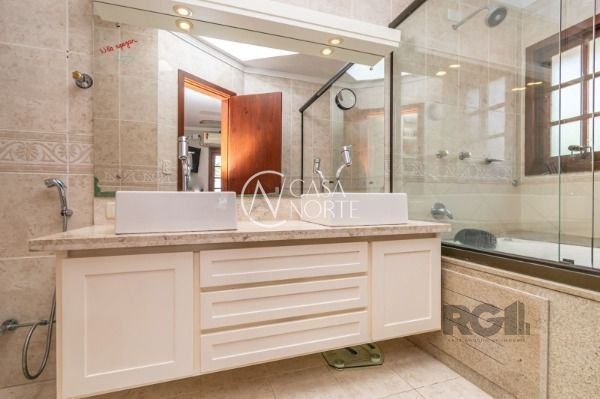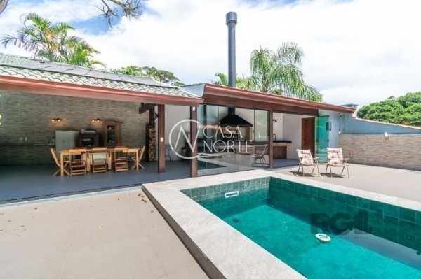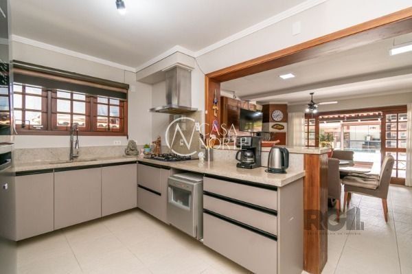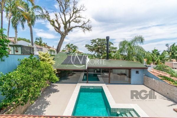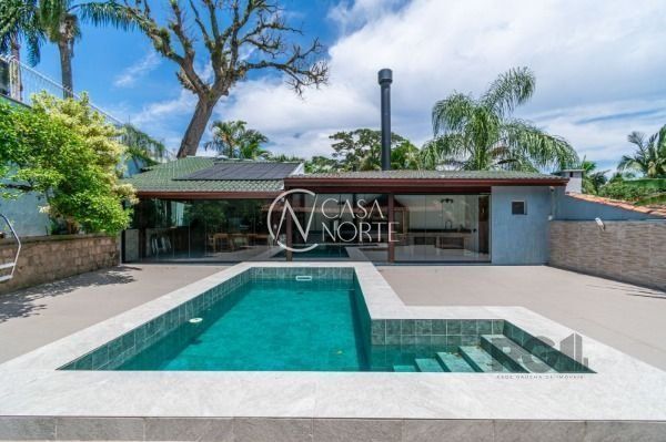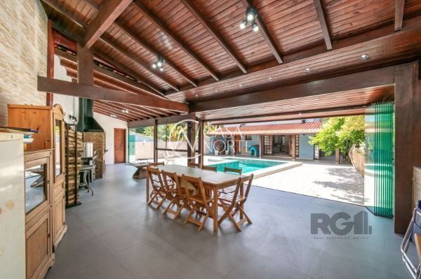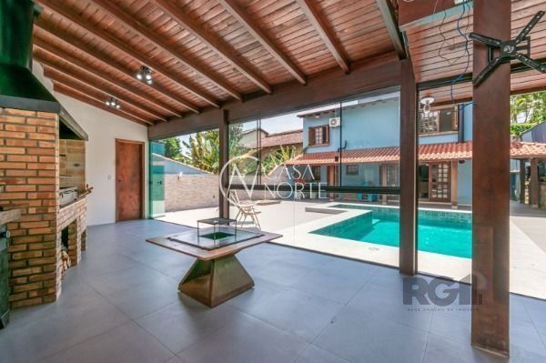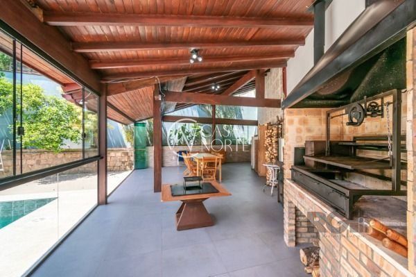 Excelente casa com 270 m² de área privativa. No primeiro pavimento amplo living com lareira, cozinha integrada com área gourmet, churrasqueira, lavanderia, lavabo, escritório e garagem fechada para 2 carros. Pátio com piscina e um lindo salão de festas com churrasqueira.