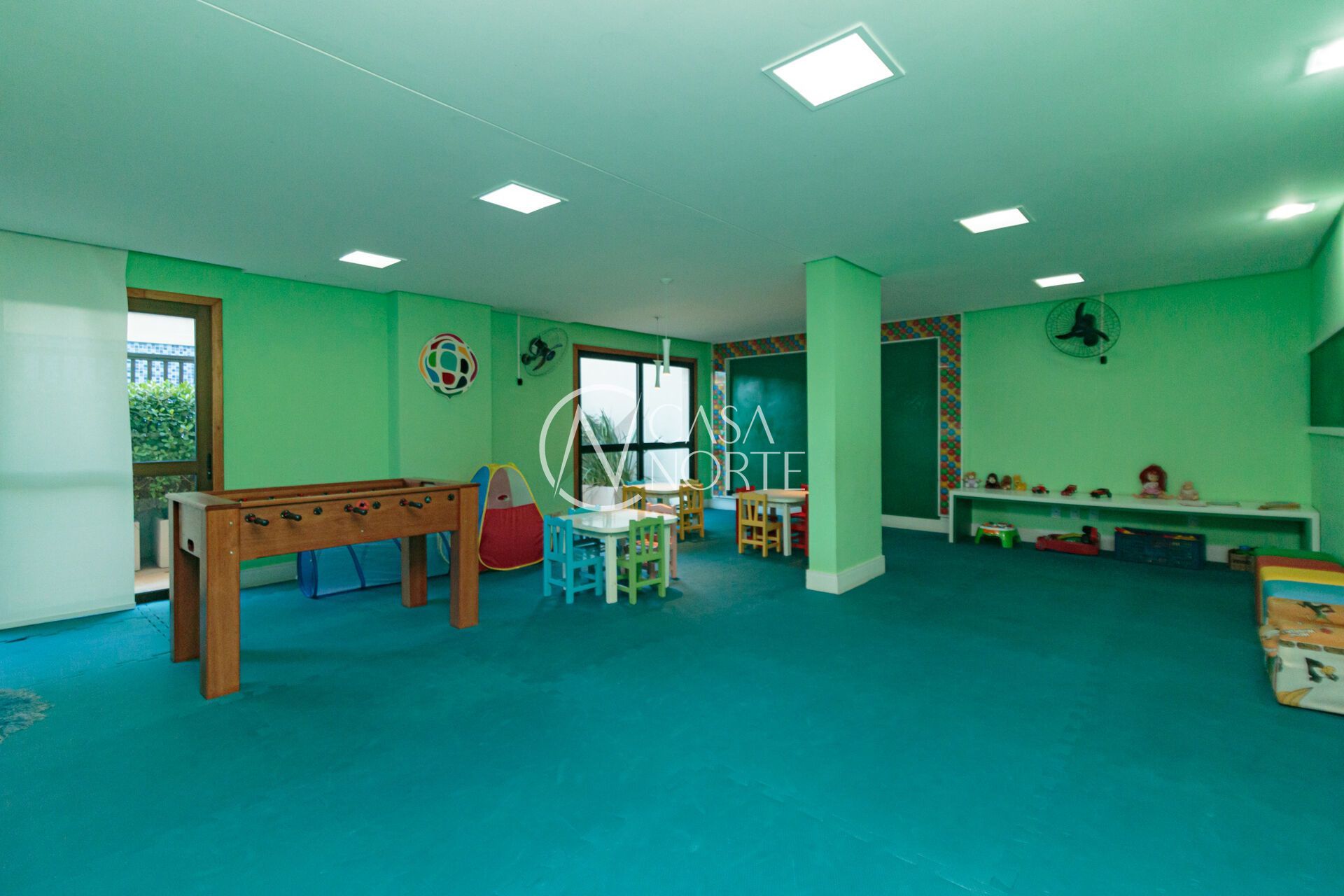 Condomínio conta com piscina, academia, elevador, brinquedoteca, salão de festa e portaria 24 horas.