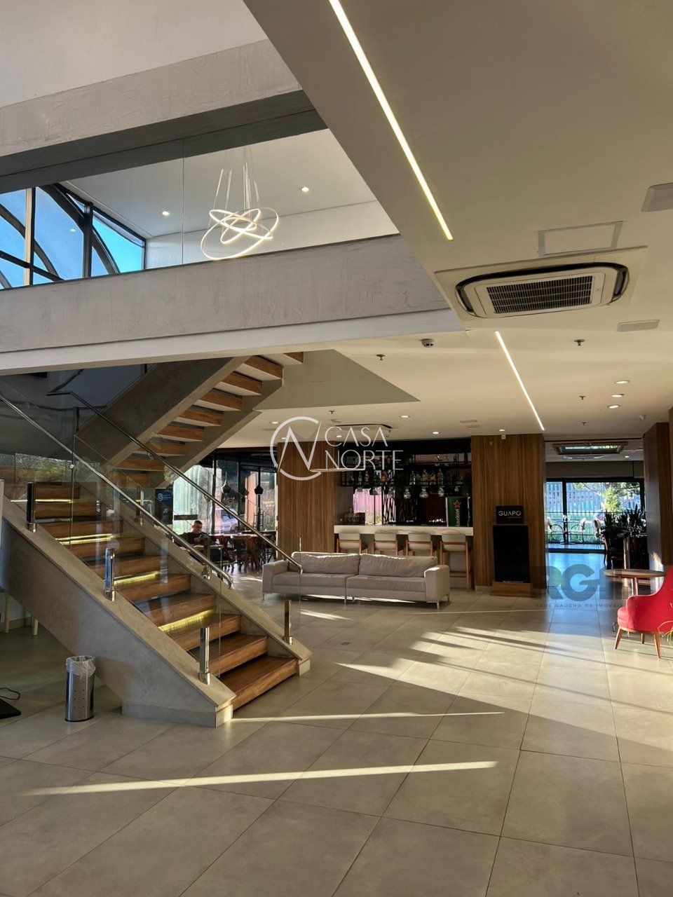Ao entrar no loft, você será recebido por uma atmosfera acolhedora e contemporânea. A sala de estar integrada à cozinha sem dúvida é o ponto alto deste imóvel, proporcionando um ambiente amplo e versátil. A presença de uma janela grande permite a entrada de luz natural, criando um espaço arejado e iluminado.