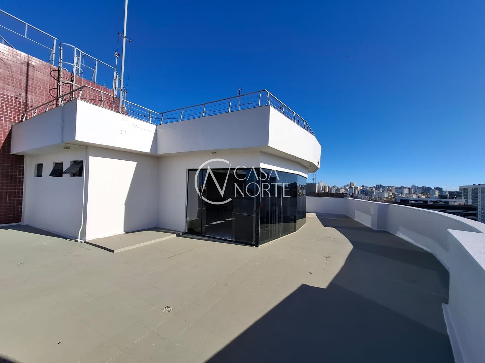 Cobertura com sala de reuniões, banheiros e uma vista panorâmica da cidade que impressiona qualquer cliente logo de cara.