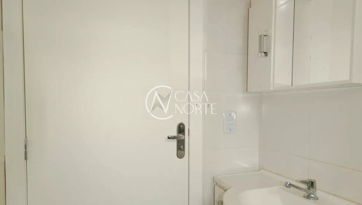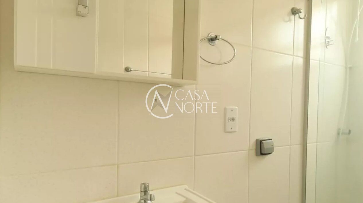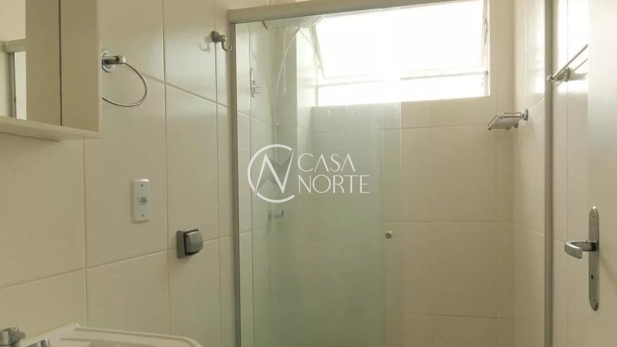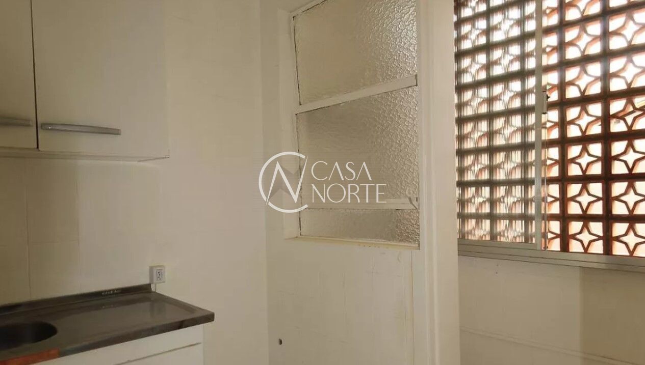 Apartamento de 1 dormitório, com 43m³ de área privativa, cozinha com área de serviço separada e 1 banheiro.