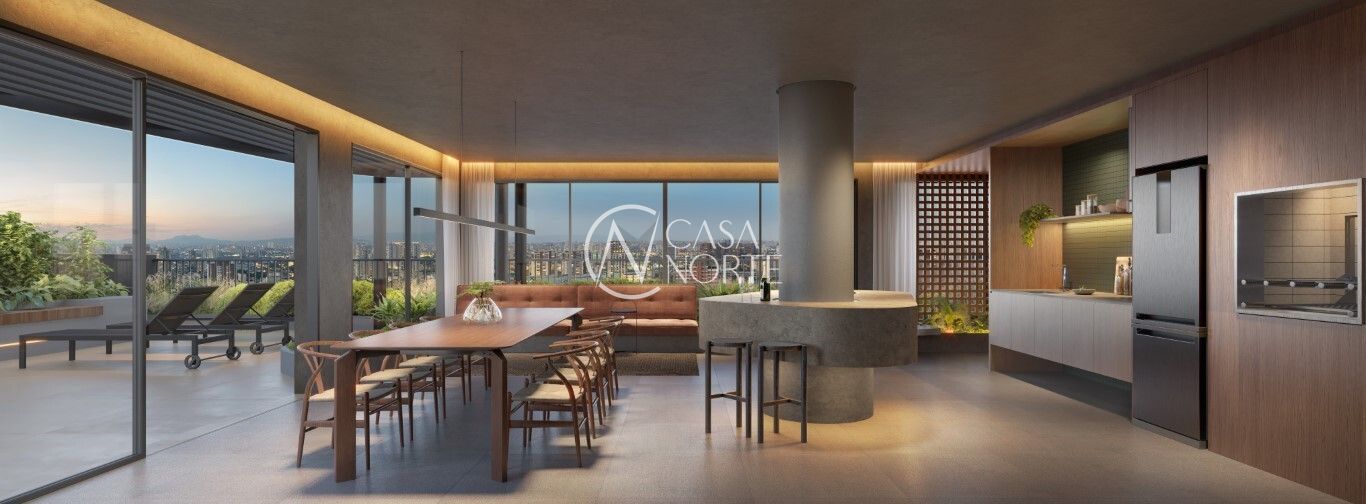 E o grande destaque: um rooftop panorâmico exclusivo, o mais alto do Menino Deus, com piscina, deck e salão de festas — um verdadeiro cartão de visitas para morar ou rentabilizar.