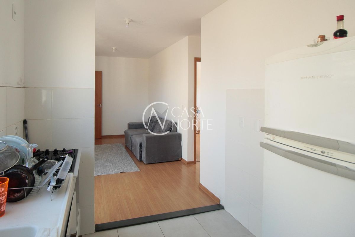 Aceita compra assistida Porto Alegre, com 44 m² de área útil, em excelente estado. São 4 lances de escada.