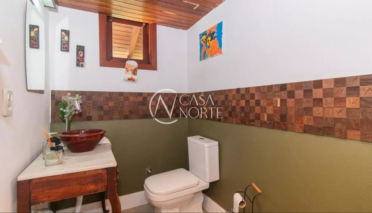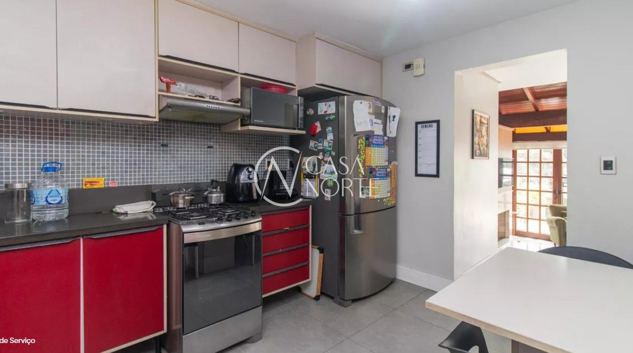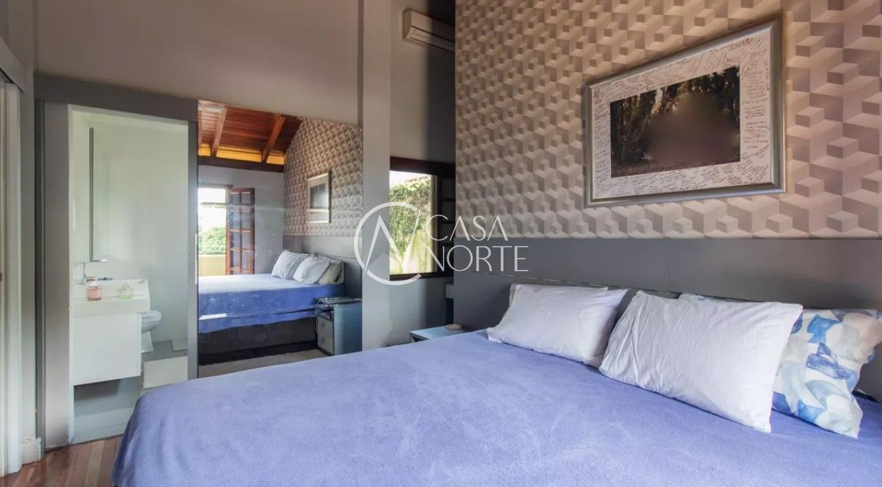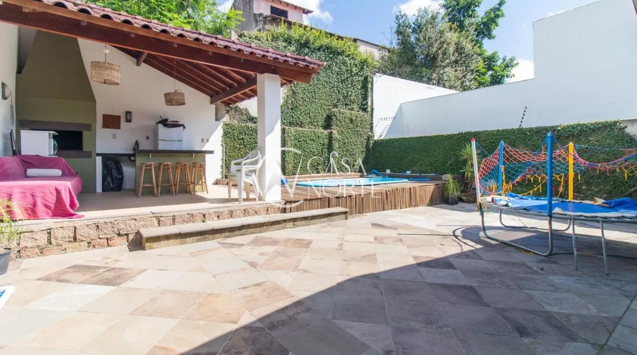 Excelente casa com 3 dormitórios, sendo 2 suítes, e 5 banheiros (3 sociais e 2 auxiliares). Possui living com lareira, sala de jantar, cozinha com móveis planejados e área de serviço. Conta com quartos e corredores com portas amplas e bem ventilados, além de 3 vagas de garagem. Dispõe de quiosque com churrasqueira e piscina.
