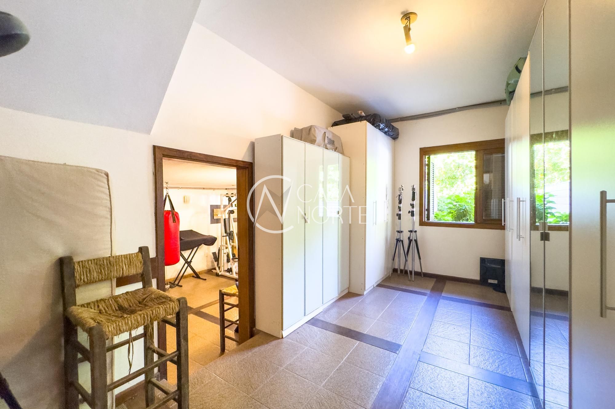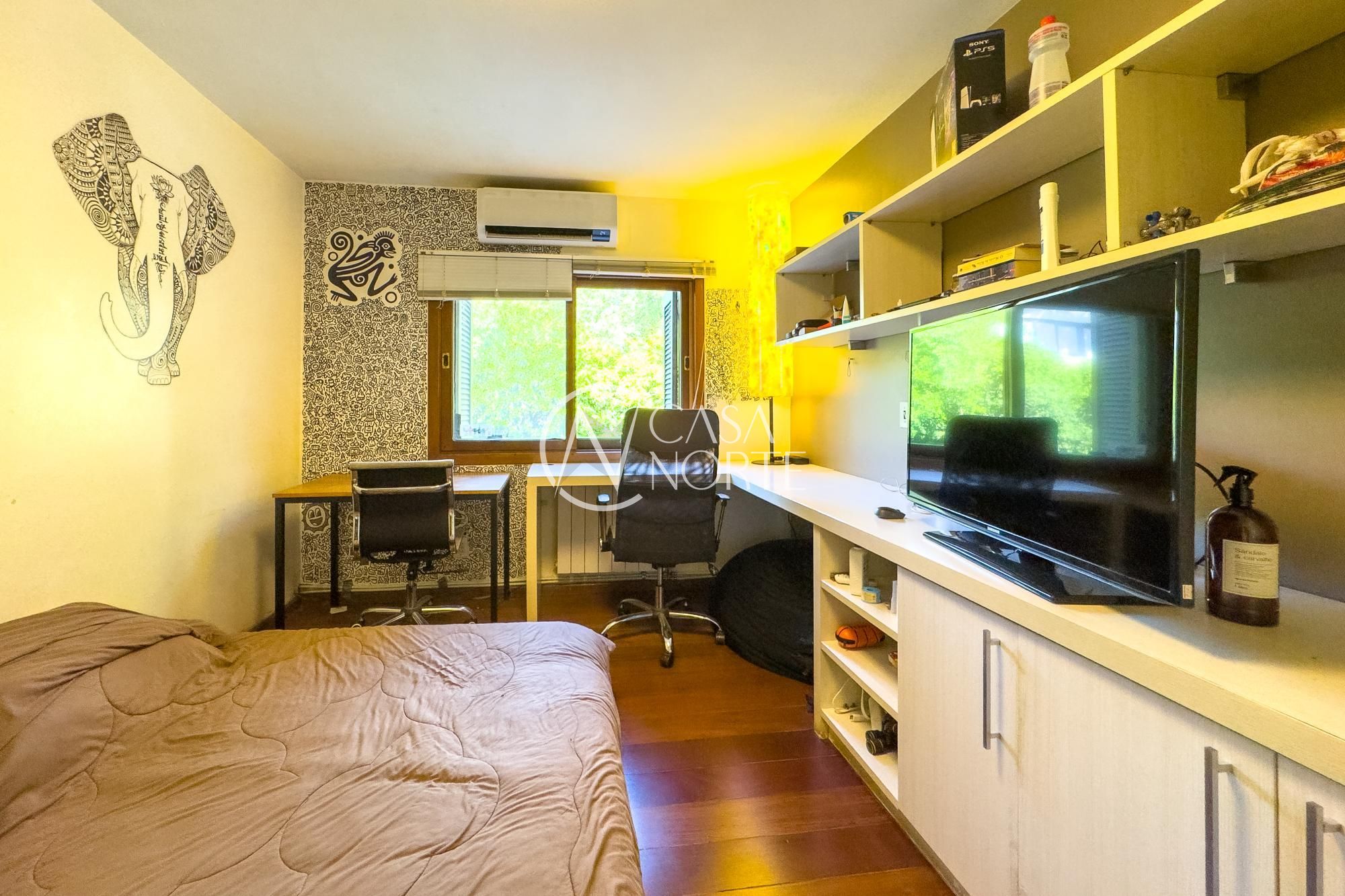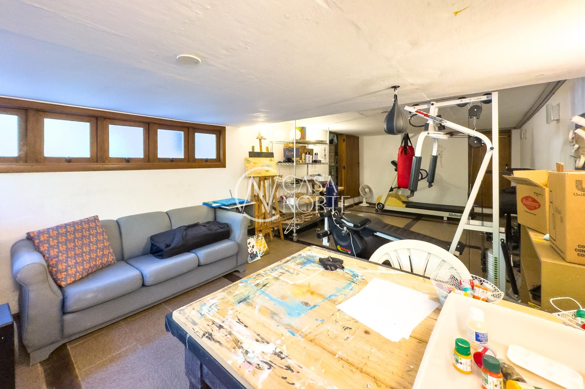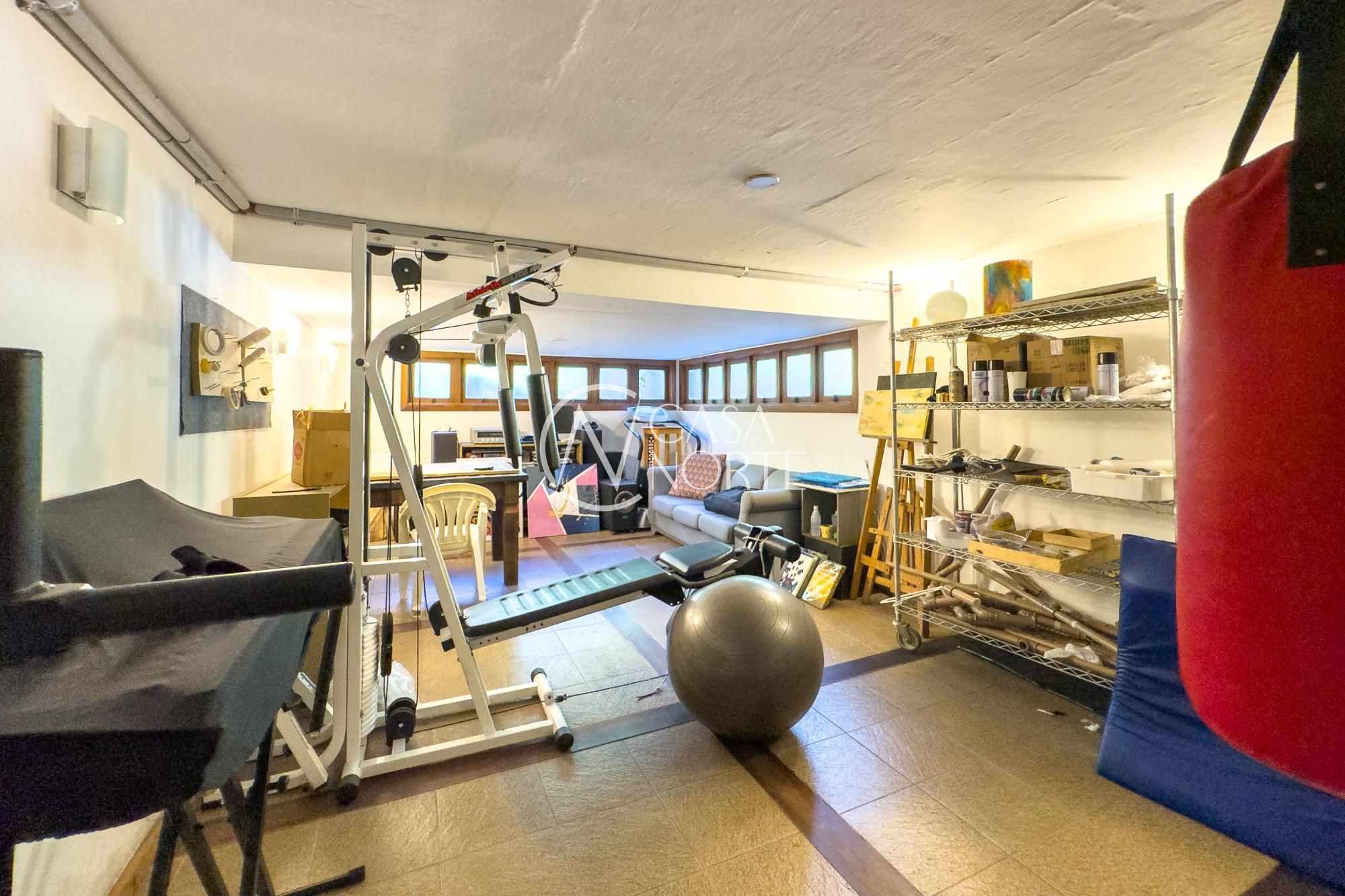 Na parte íntima, estar com lareira, escritório e 3 dormitórios, sendo 1 suíte máster com banheira de hidromassagem. O banheiro social também possui banheira. Em outro nível, dois ambientes multiuso permitem adaptação para academia, dormitório adicional, ateliê ou home office. No subsolo, dependência de empregada completa e mais um espaço onde também pode ser usado com lavanderia,