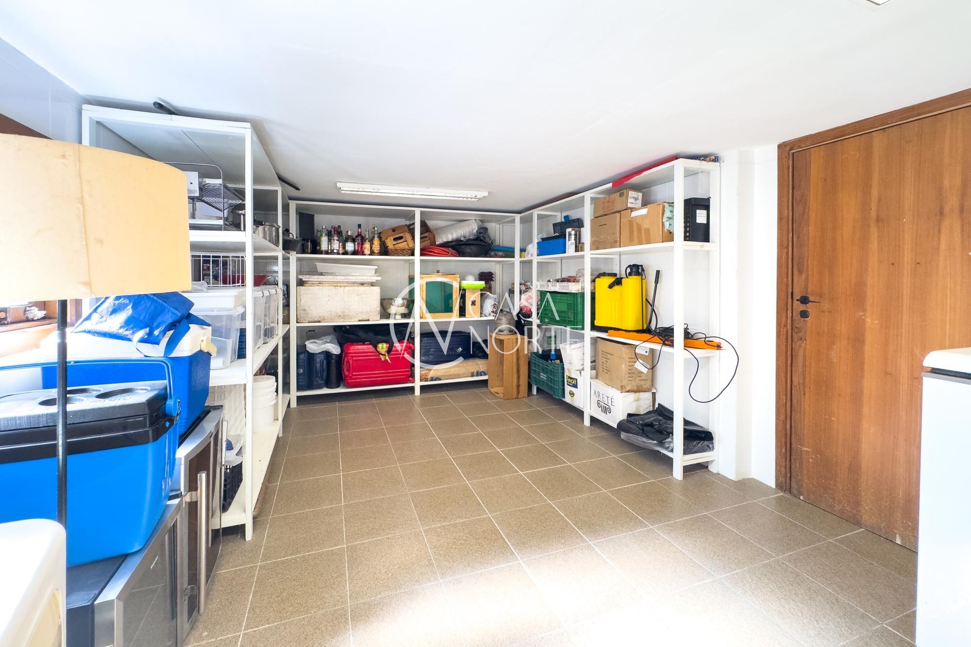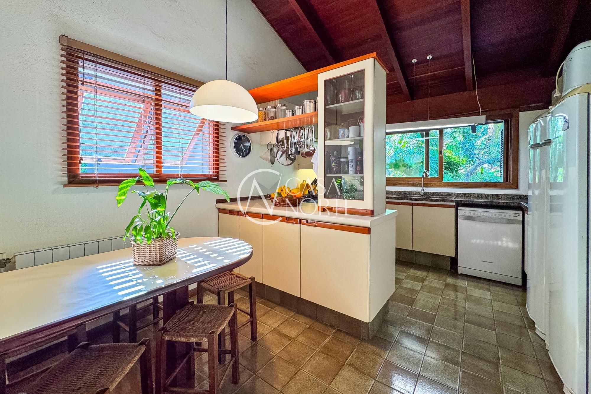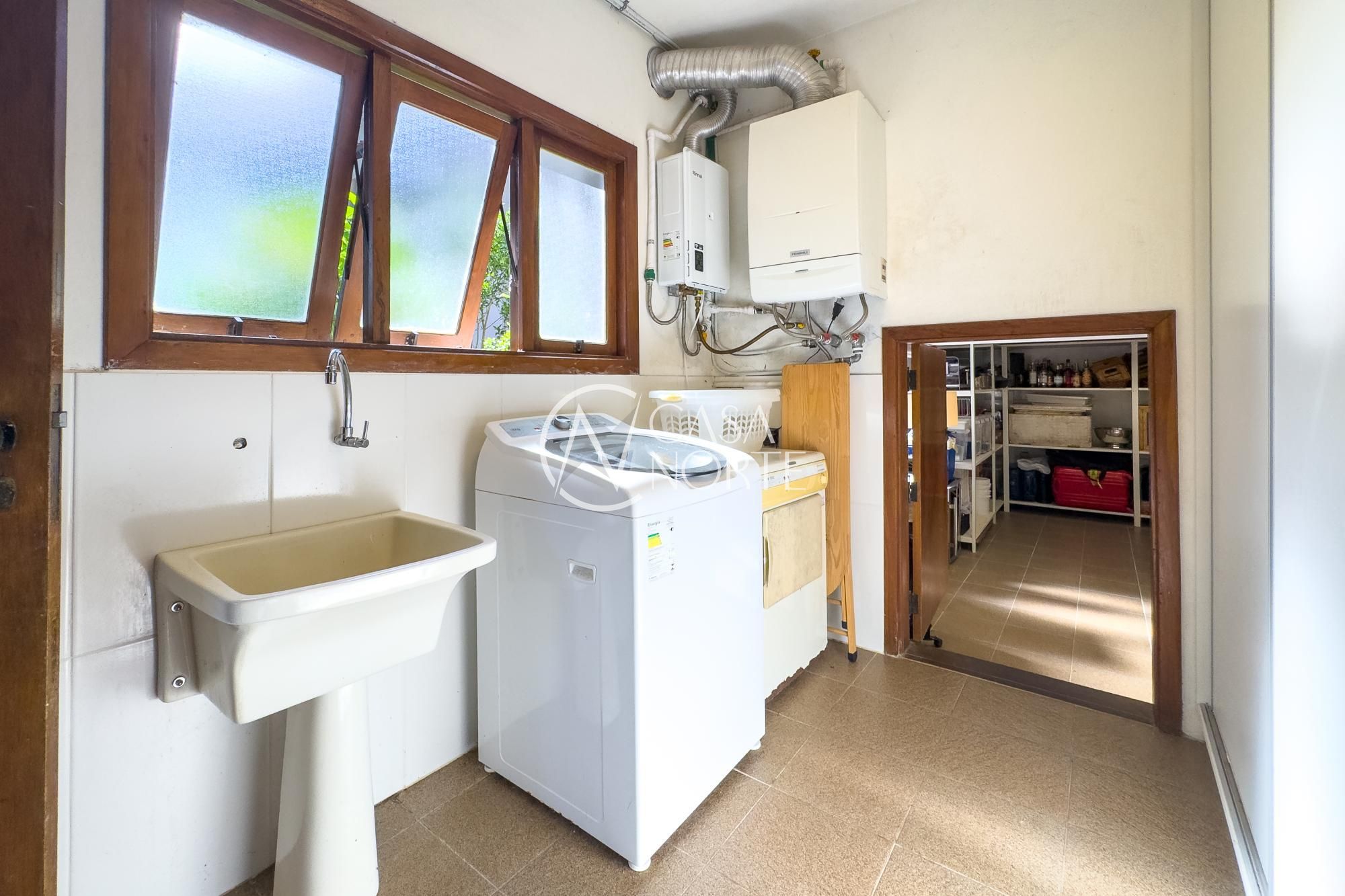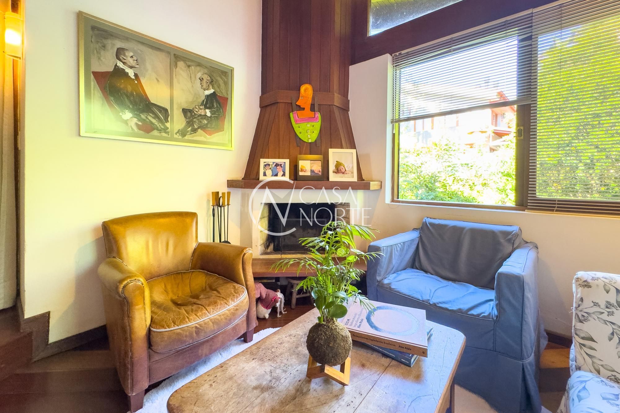 O living para dois ambientes com lareira se conecta à sala de jantar e ao lavabo. A cozinha conta com móveis planejados, lavanderia e depósito/despensa. São dois espaços gourmet, um interno e outro externo, ambos com churrasqueira e uma parrilla e chopeira, Pátio com piscina aquecida.
