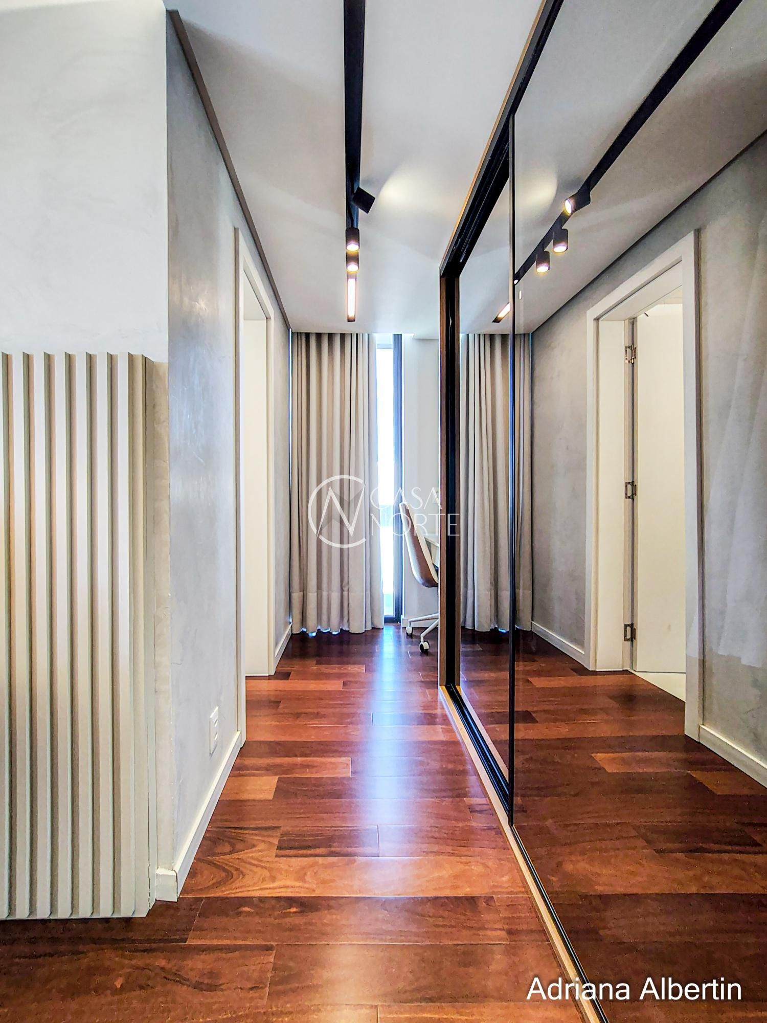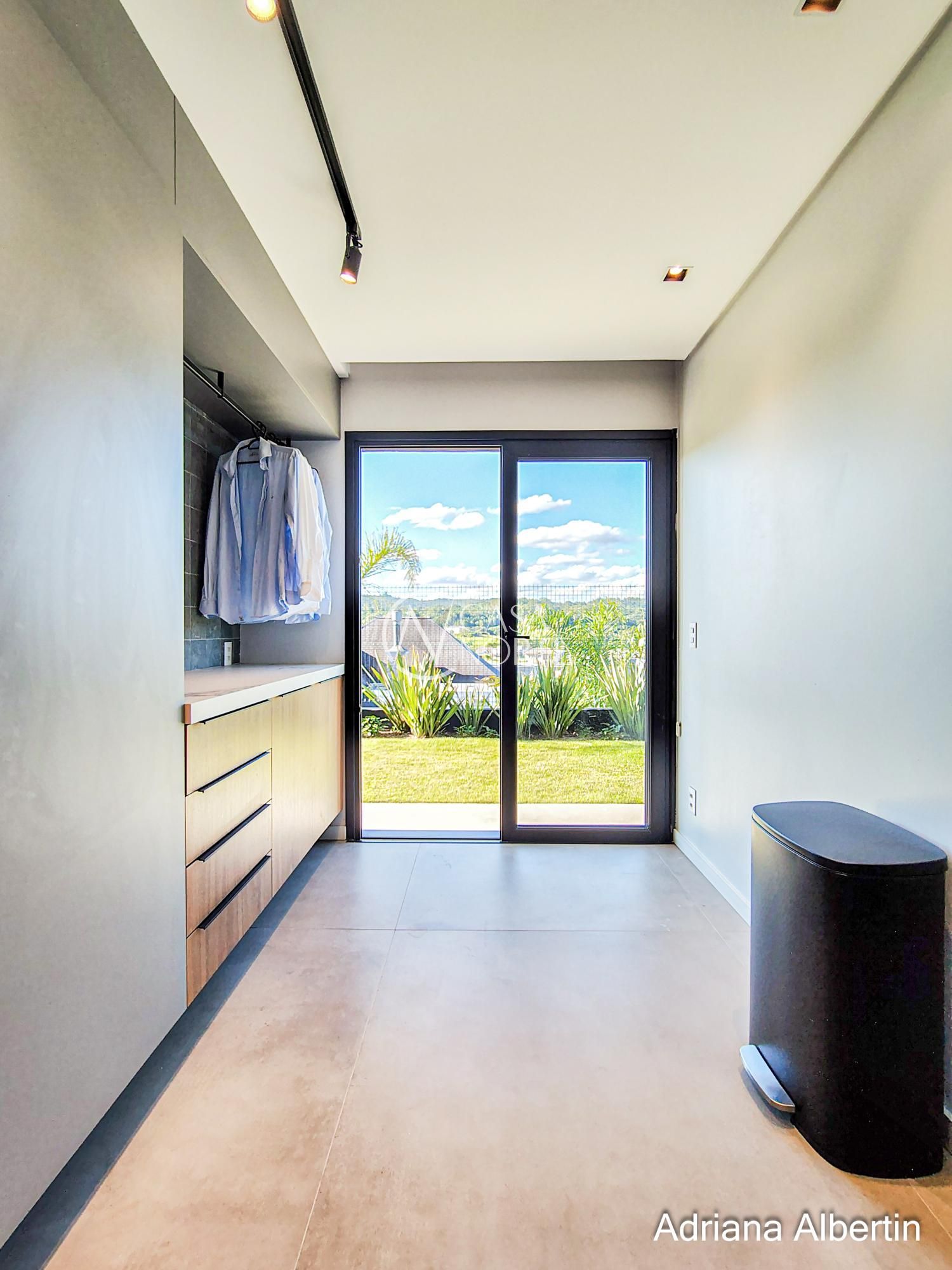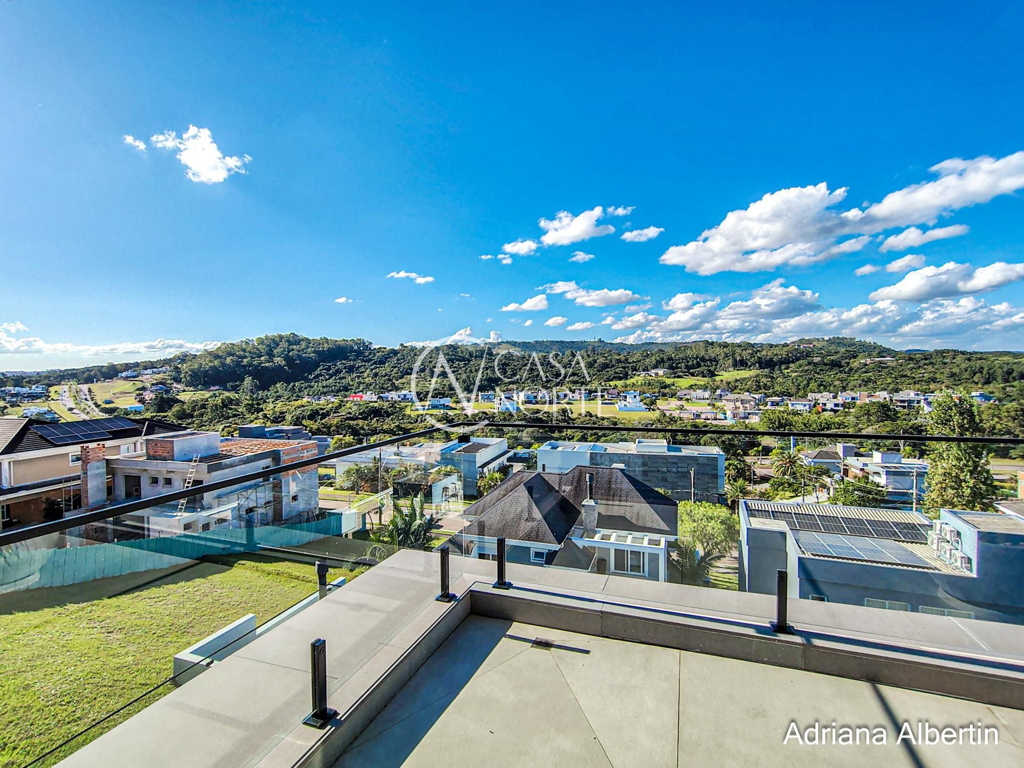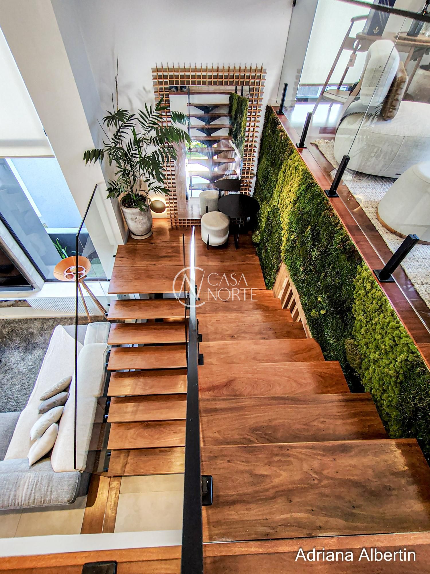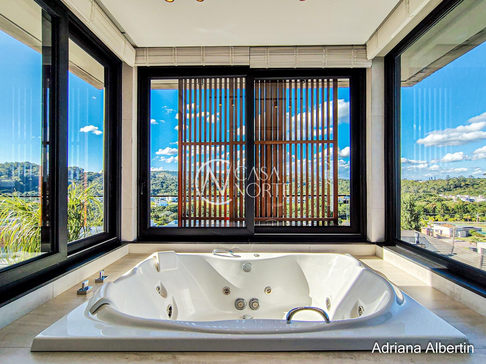 Logo na chegada, o hall de entrada já entrega a proposta da casa: ambientes amplos, acabamentos de alto padrão e uma vista aberta que acompanha praticamente todos os espaços sociais.