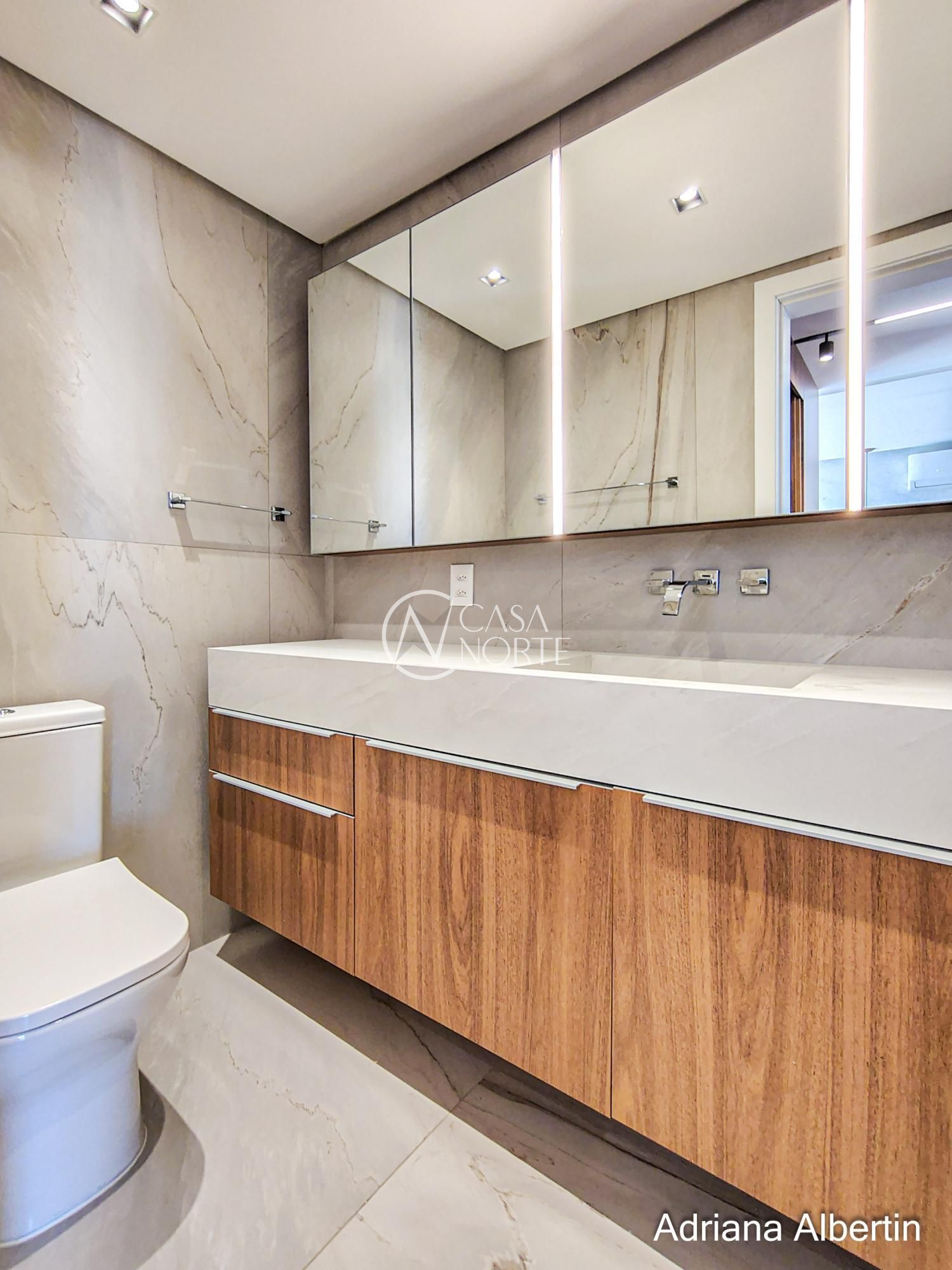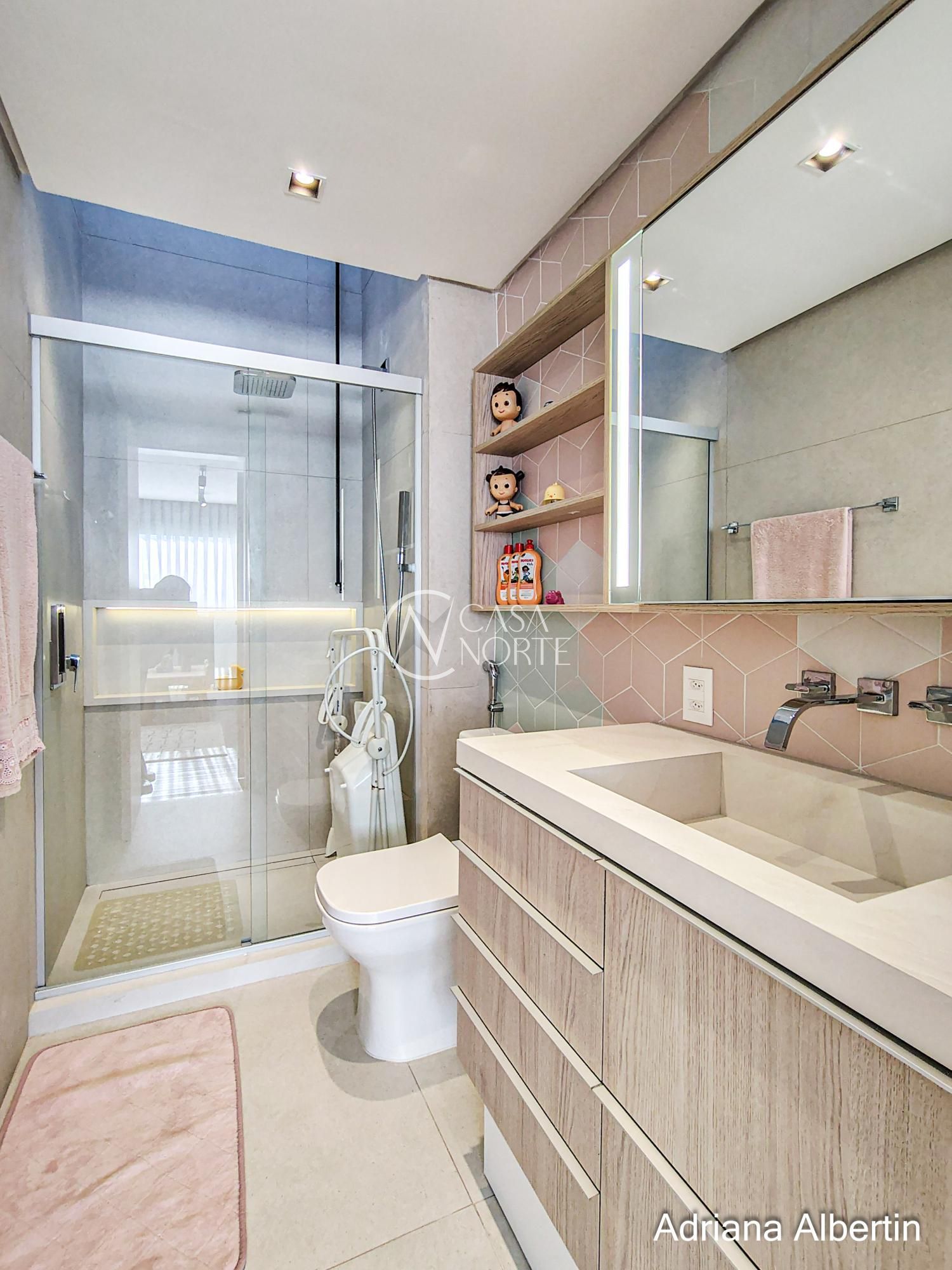 A área da piscina ainda conta com banheiro de apoio, trazendo mais praticidade para quem está aproveitando o espaço externo.