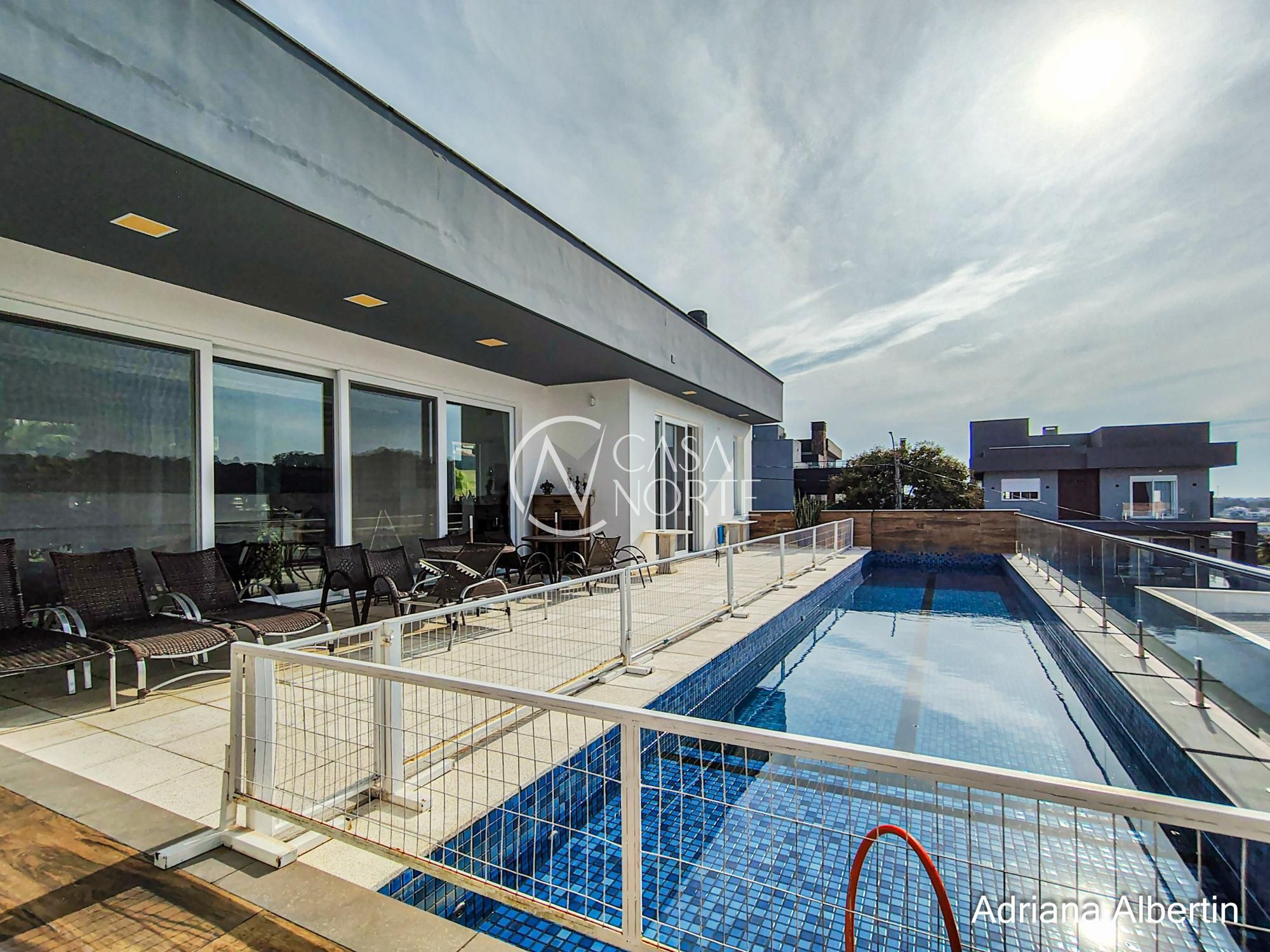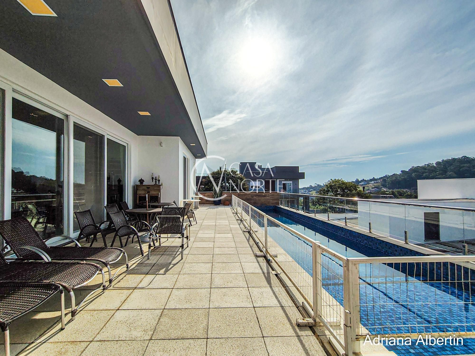 A piscina em formato de raia reforça essa proposta: uso de verdade. Seja pra nadar ou simplesmente aproveitar o espaço aberto com vista.