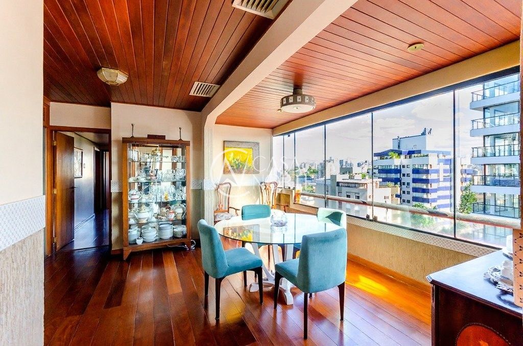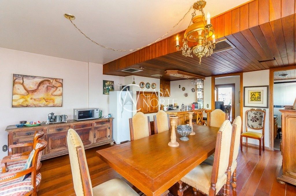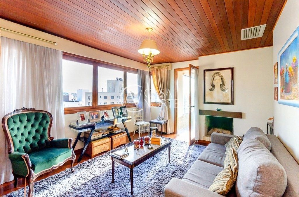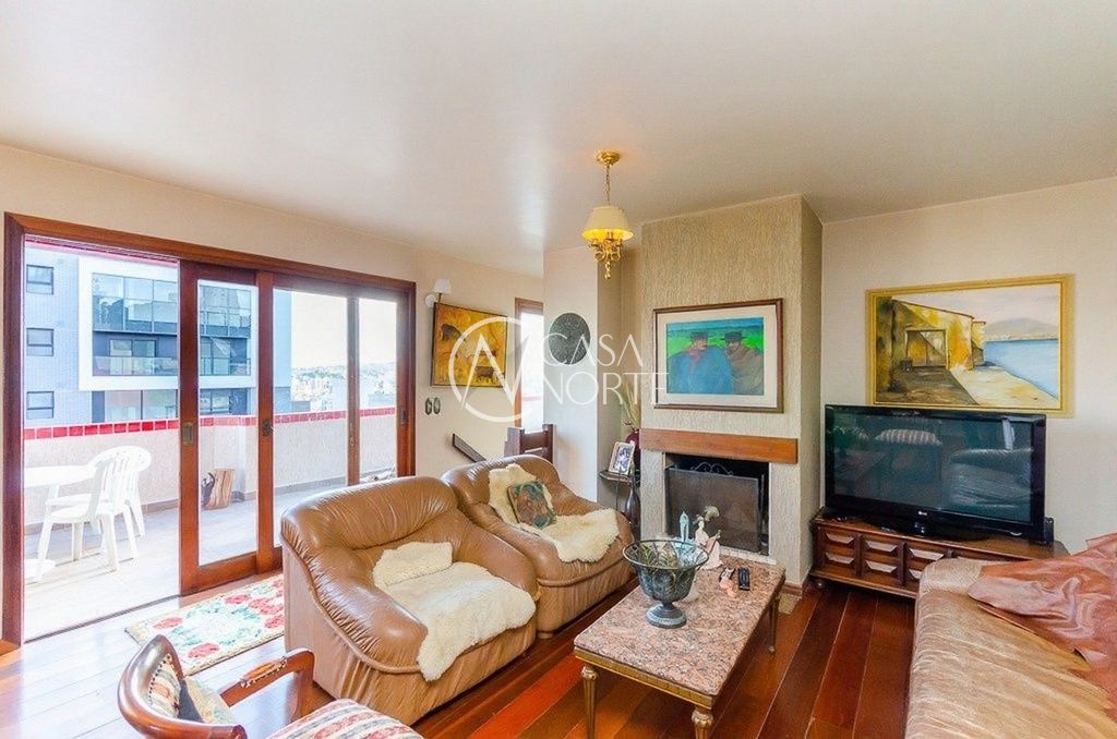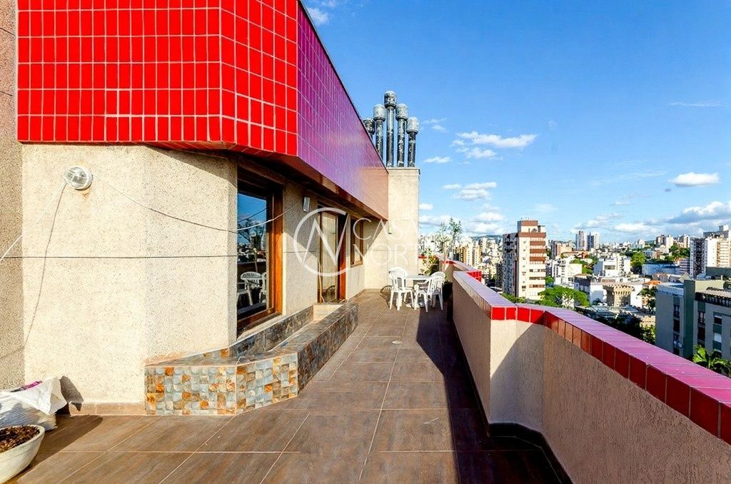Cobertura de alto padrão, totalmente reformada, com 311m² privativos, em região privilegiada do bairro Rio Branco. Possui 3 quartos, sendo 1 suíte, living amplo para 3 ambientes com churrasqueira e lareira, além de sacada frontal com vista definida e excelente luminosidade natural.