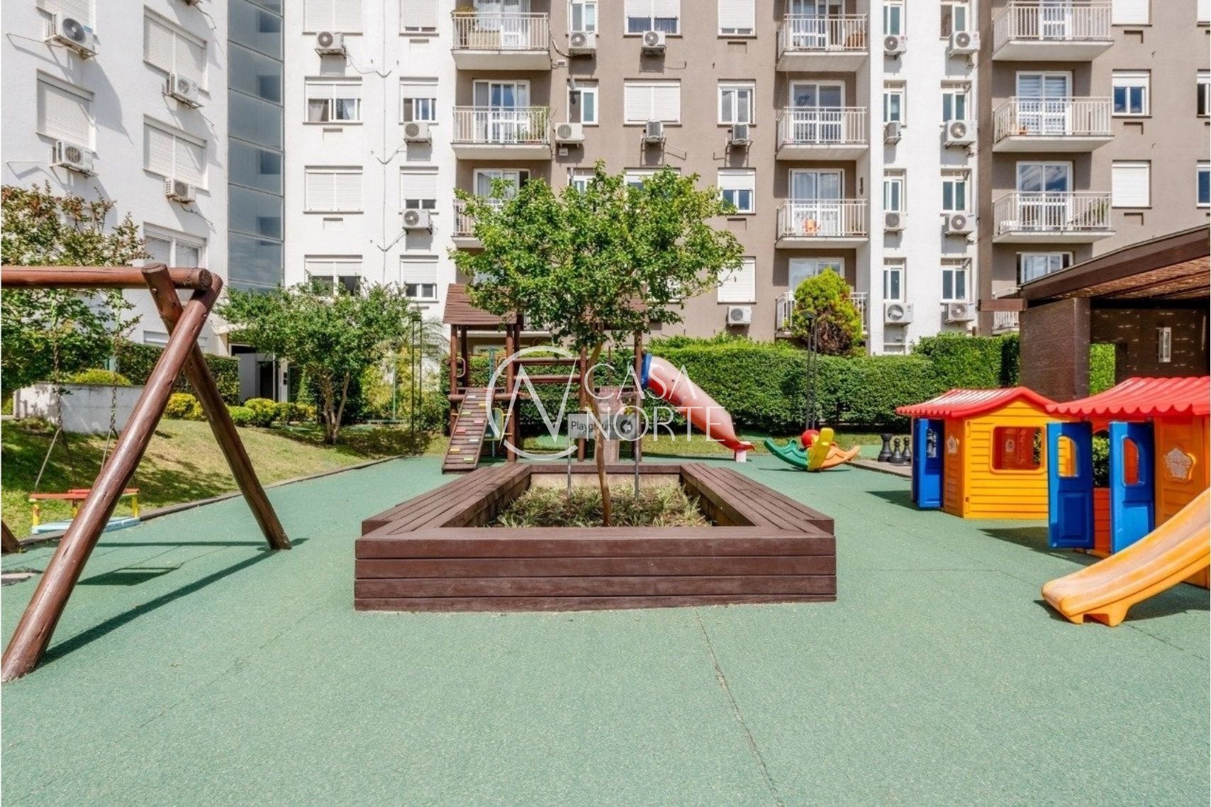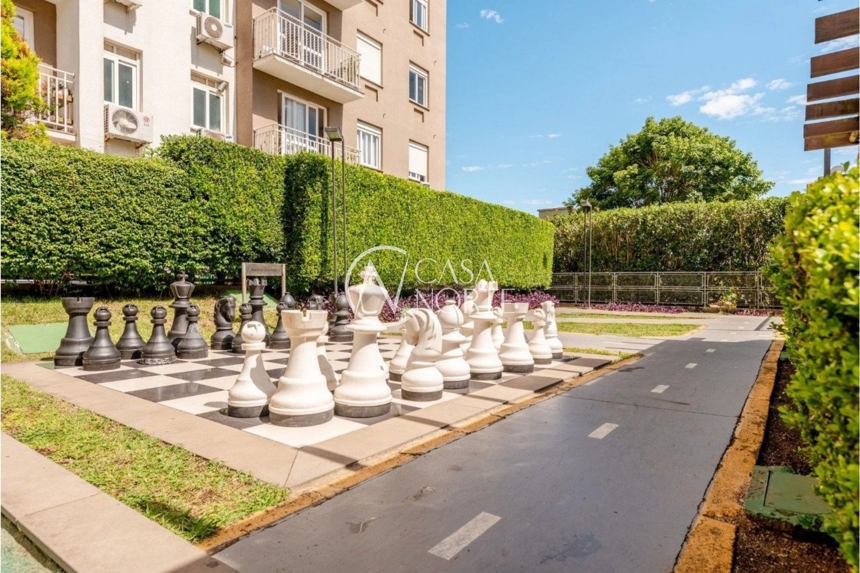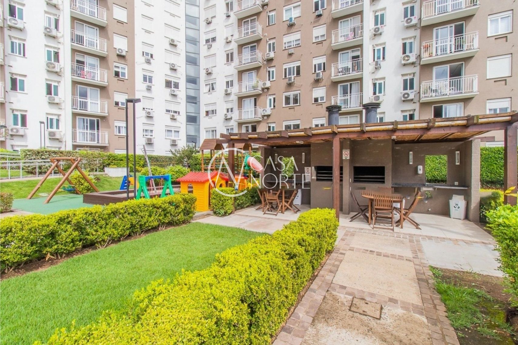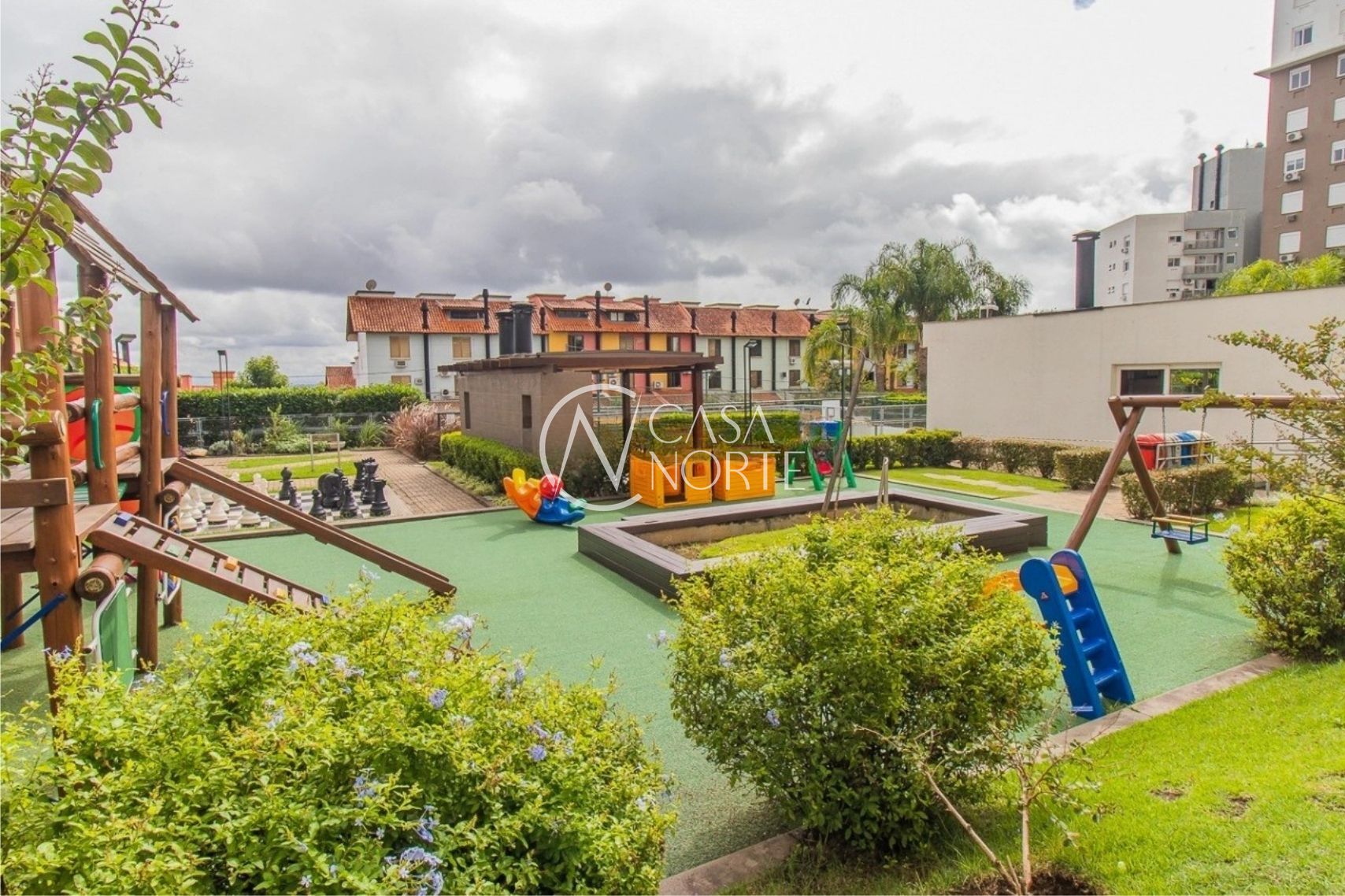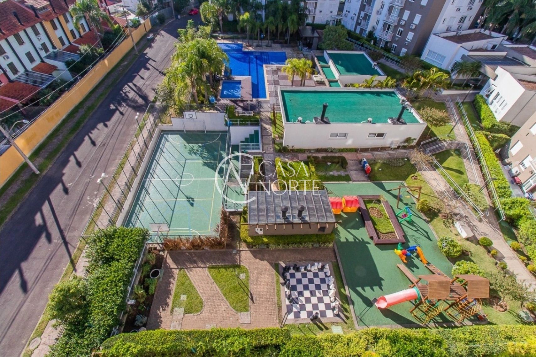 O condomínio se destaca pela infraestrutura completa, oferecendo dois salões de festas, piscina, quadra poliesportiva, espaço infantil, academia equipada, sala de jogos e portaria com controle de acesso 24 horas, garantindo lazer e segurança para toda a família.