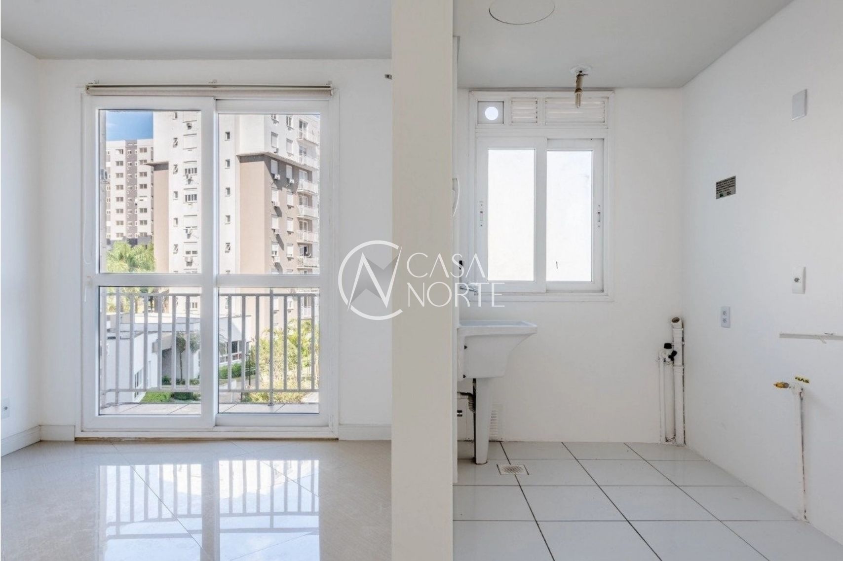 Com 56 m² de área privativa, o imóvel possui dois dormitórios, sendo uma suíte, living integrado com acesso à sacada e uma vaga de garagem coberta. A planta é funcional, bem distribuída e ideal para quem busca um dia a dia confortável.