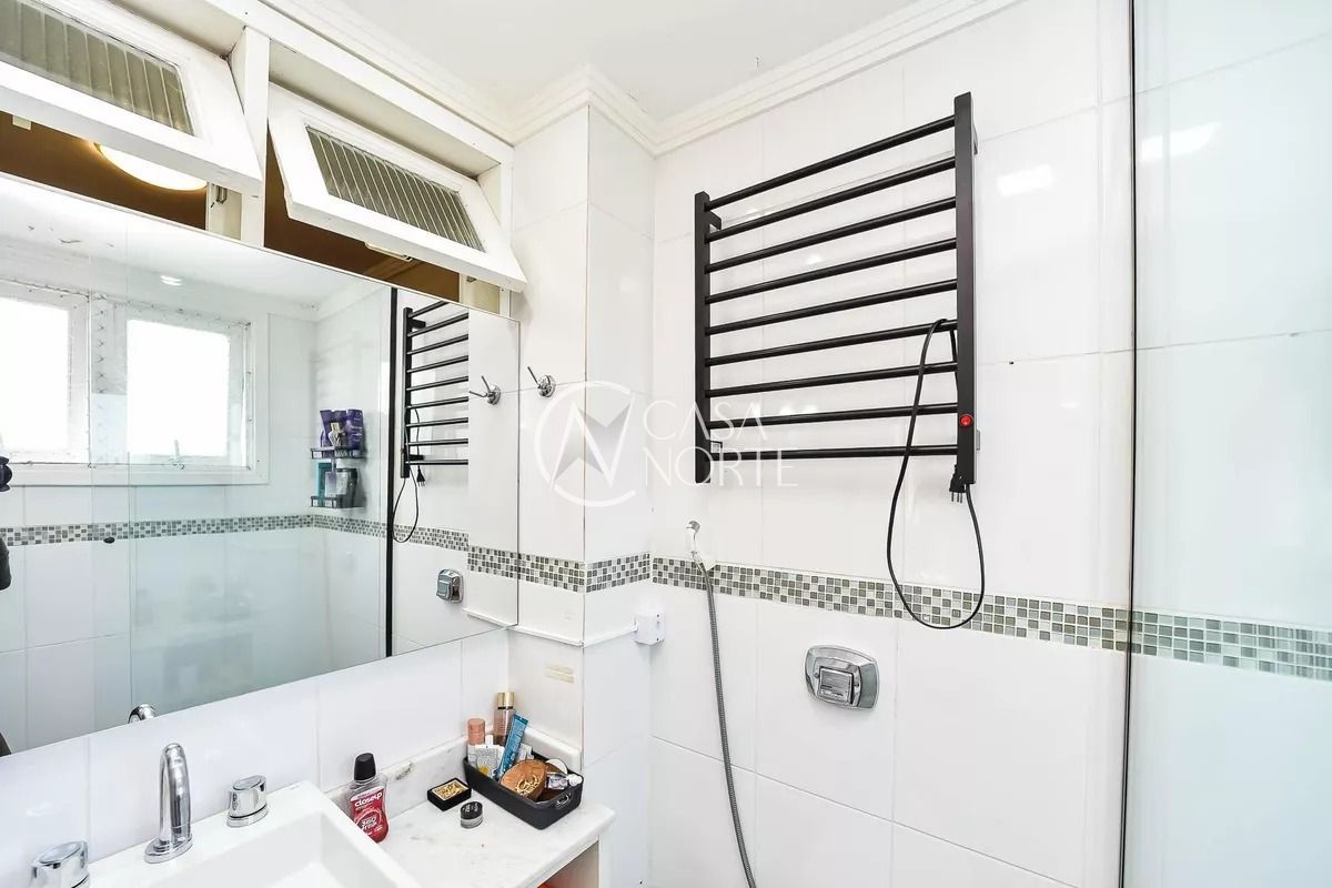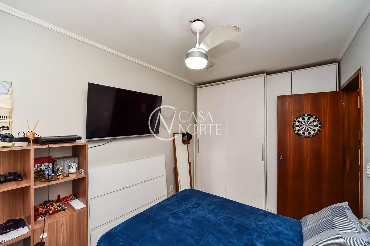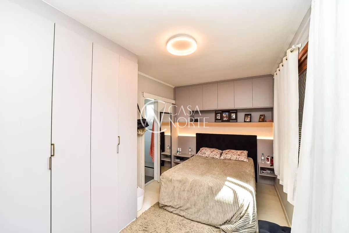 O segundo quarto é iluminado, conta com cama, armários, mesa para computador e janelas grandes. O banheiro auxiliar possui móveis sob medida, armários, box de vidro e janela com abertura para o exterior.