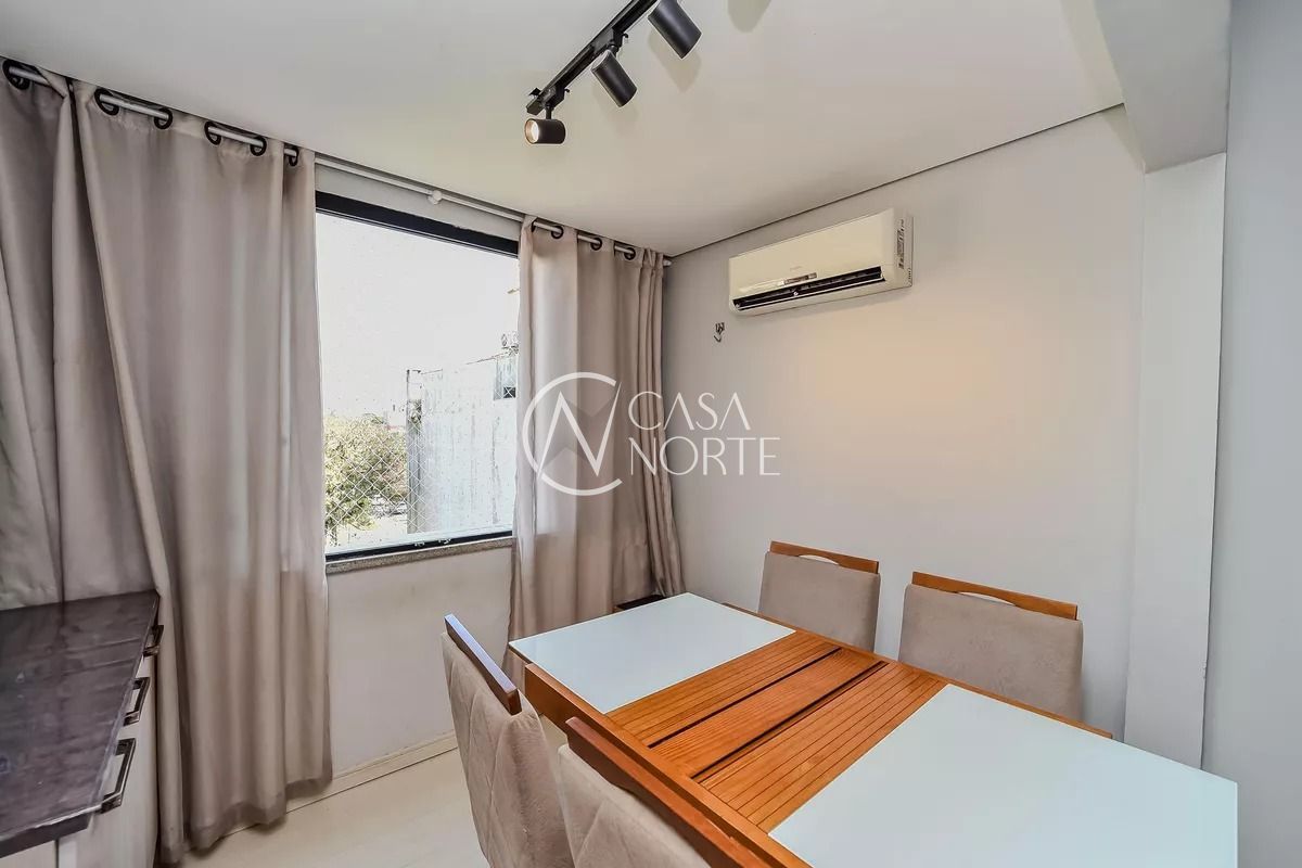A sala é ampla, arejada e bem iluminada, com janelas grandes, ar-condicionado, móveis planejados sob medida e mesa de jantar. A cozinha é grande, ventilada e com excelente iluminação natural, equipada com armários, geladeira, fogão, máquina de lavar louça e liquidificador.