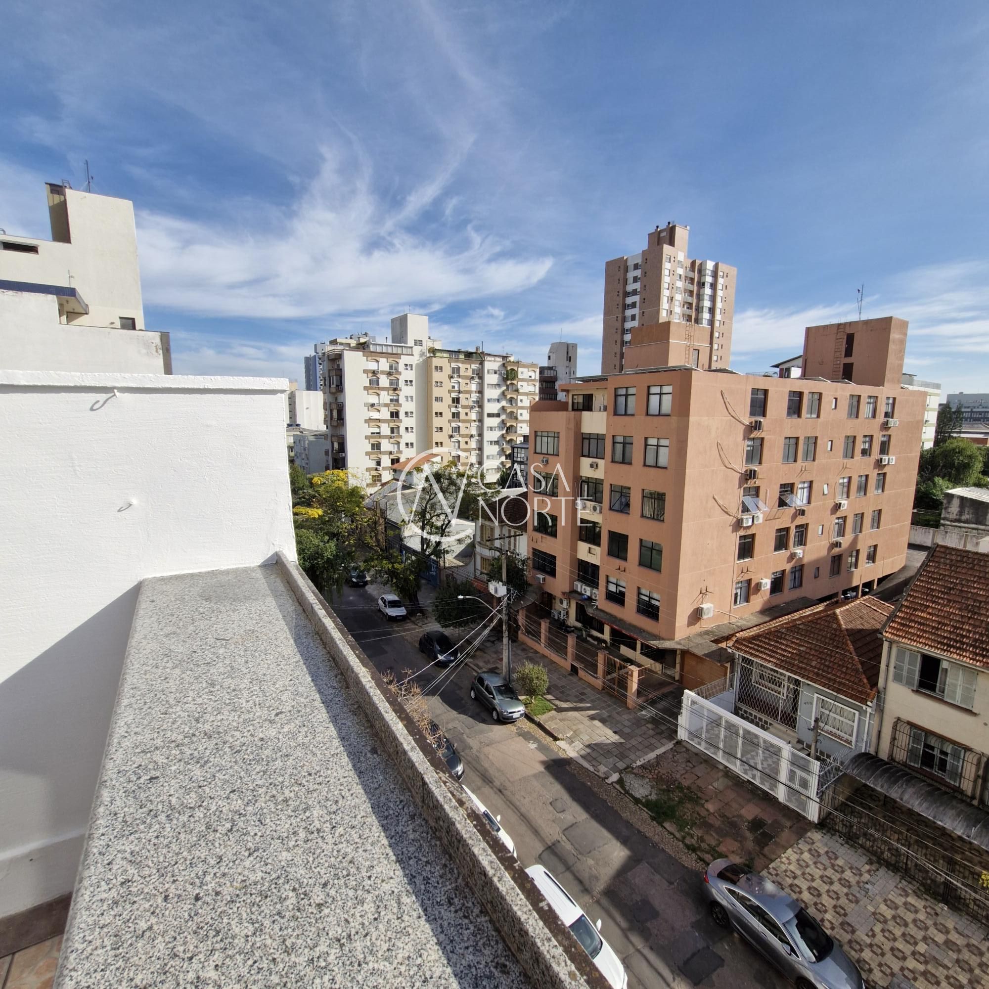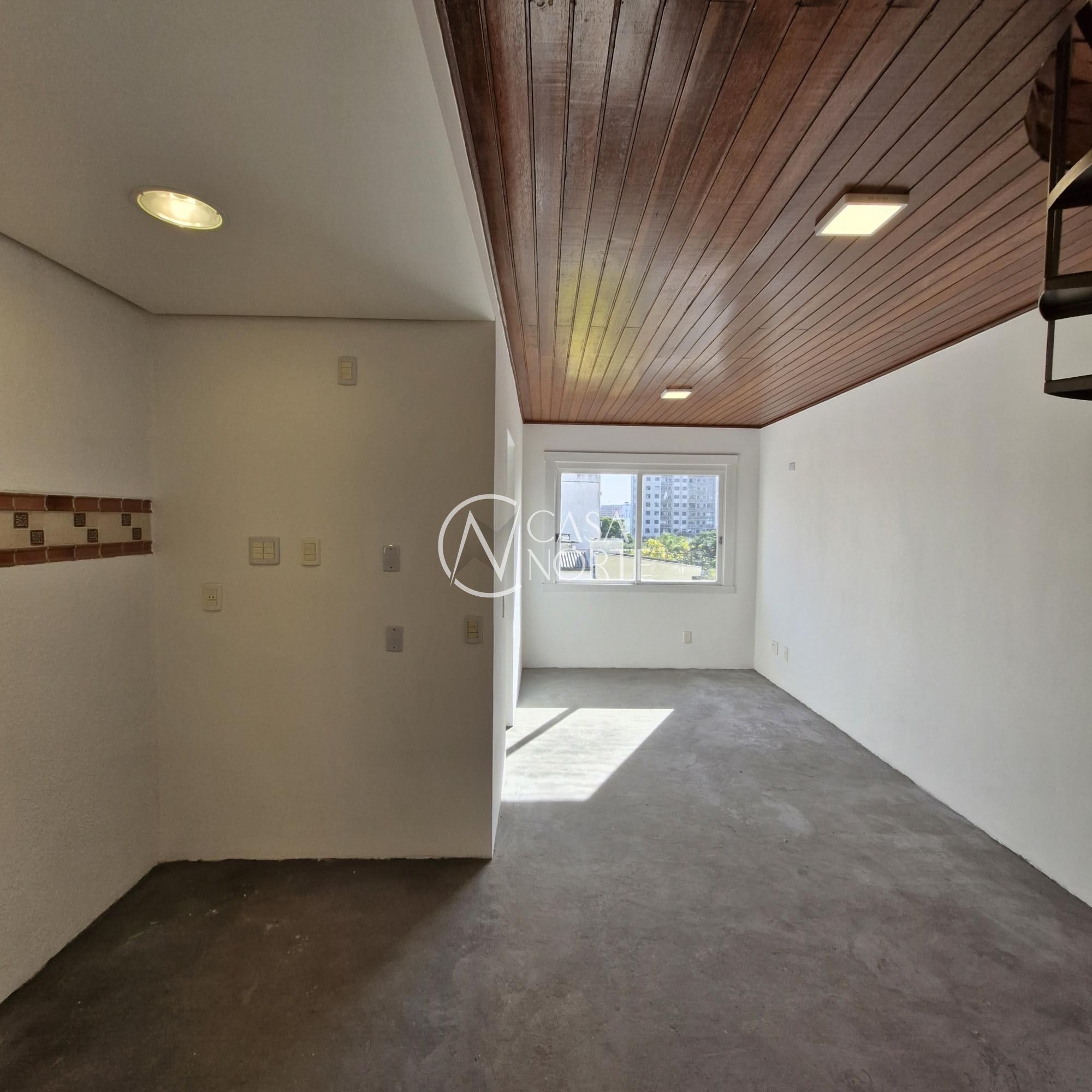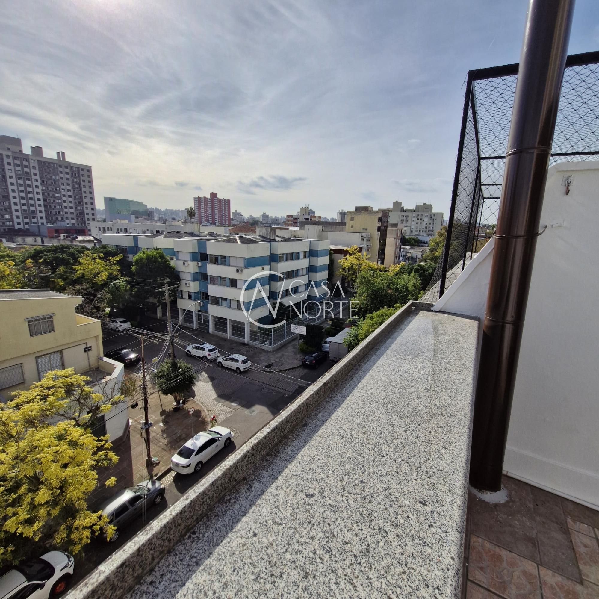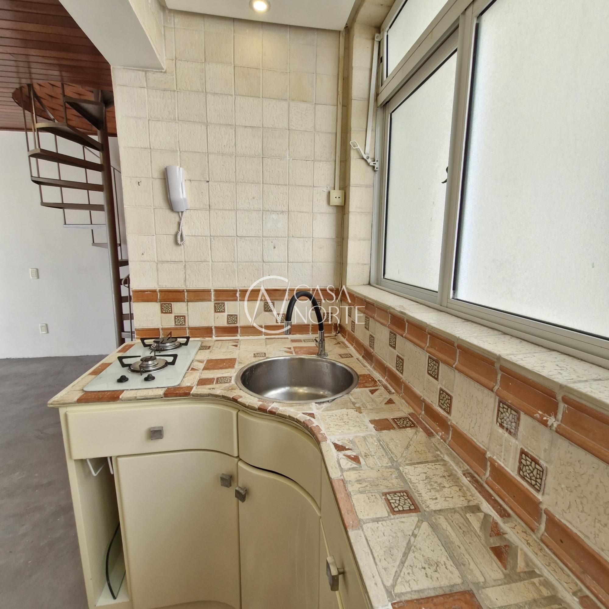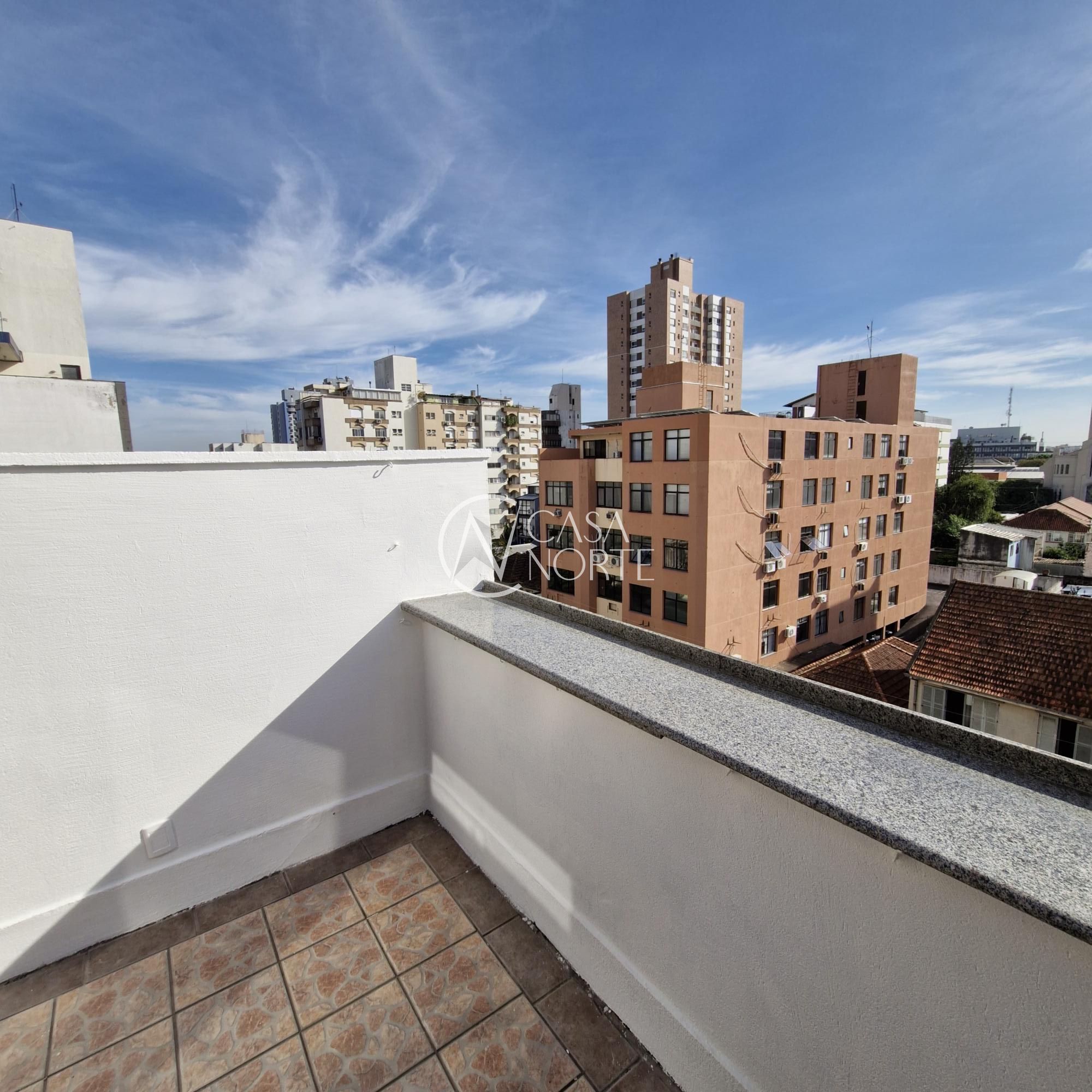 Cobertura com uma suíte com possibilidade para mais dormitório na cobertura, sala e cozinha americana, no andar superior área de serviço com banheiro, espaço gourmet, tudo isso no bairro Menino Deus. Condomínio enxuto, sem elevador, porém possui uma vista panorâmica belíssima do bairro e com toda a infraestrutura pública.