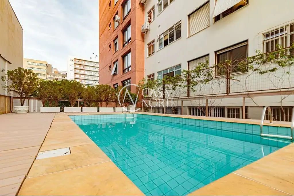 Apartamento com 138 m² de área privativa, localizado no bairro Rio Branco, com 3 quartos, sendo 1 suíte, 3 banheiros, lavabo e dependência de empregada. O imóvel possui living espaçoso com sacada, ambientes amplos e bem distribuídos. Conta ainda com área de serviço, armários na cozinha e chuveiro a gás, oferecendo conforto e funcionalidade no dia a dia. O condomínio é fechado e dispõe de portaria e segurança 24 horas, elevador, piscina coletiva, jardim, churrasqueira, salão de festas, bicicletário e estacionamento para visitantes, garantindo lazer e praticidade aos moradores.