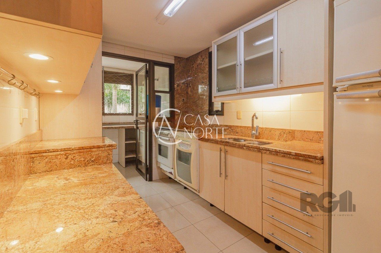 Apartamento semimobiliado, com 143 m² de área privativa, localizado no bairro Três Figueiras em Porto Alegre/RS.