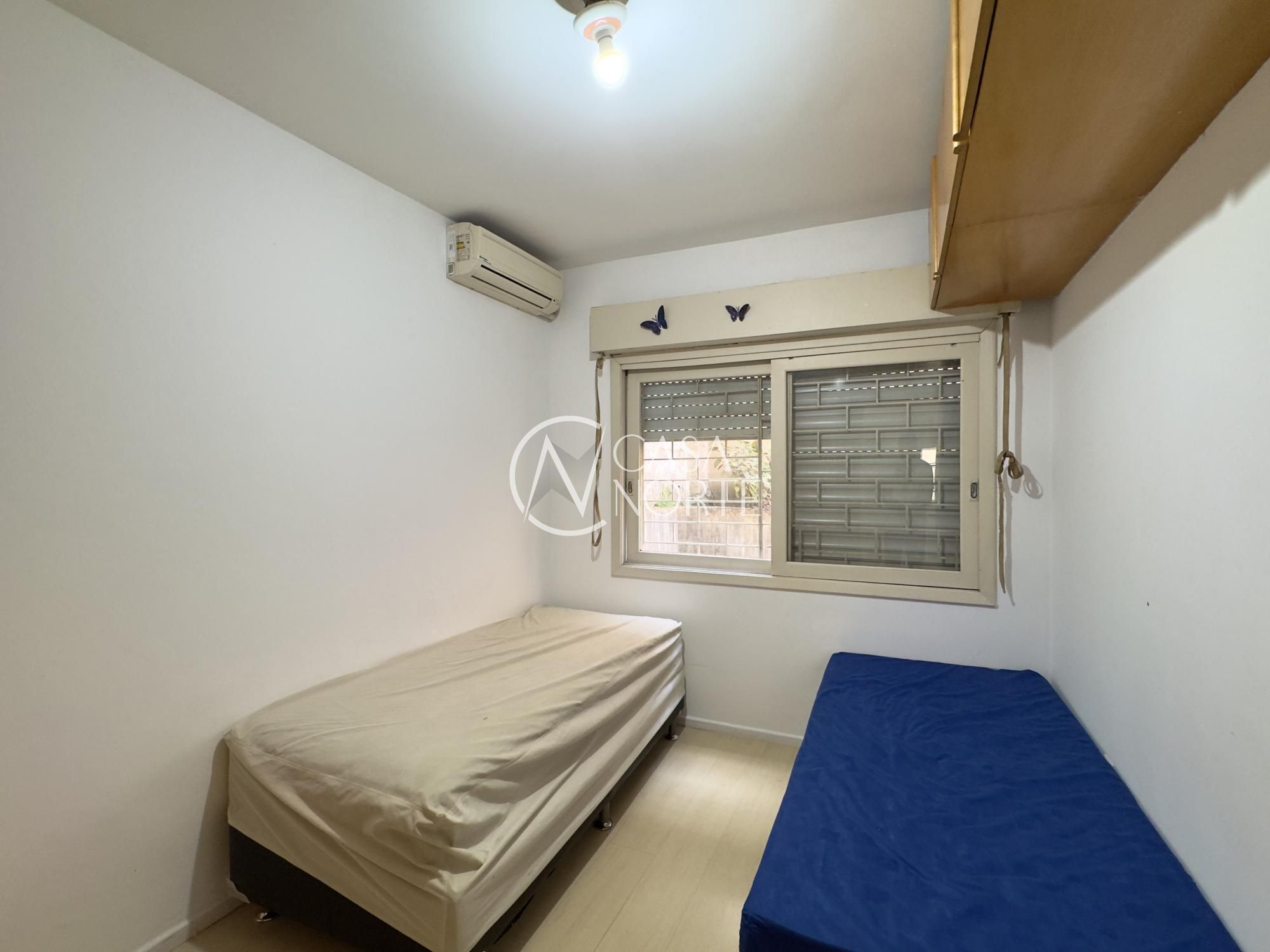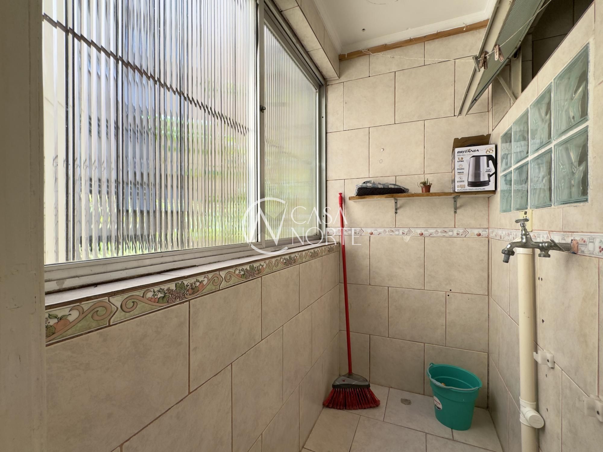 Apartamento semimobiliado de 43m², 1 dormitório transformado em 2 dormitórios, living, cozinha, área de serviço separada e 1 banheiro. A cozinha é espaçosa e possui armários, imóvel silencioso e com orientação solar Norte.