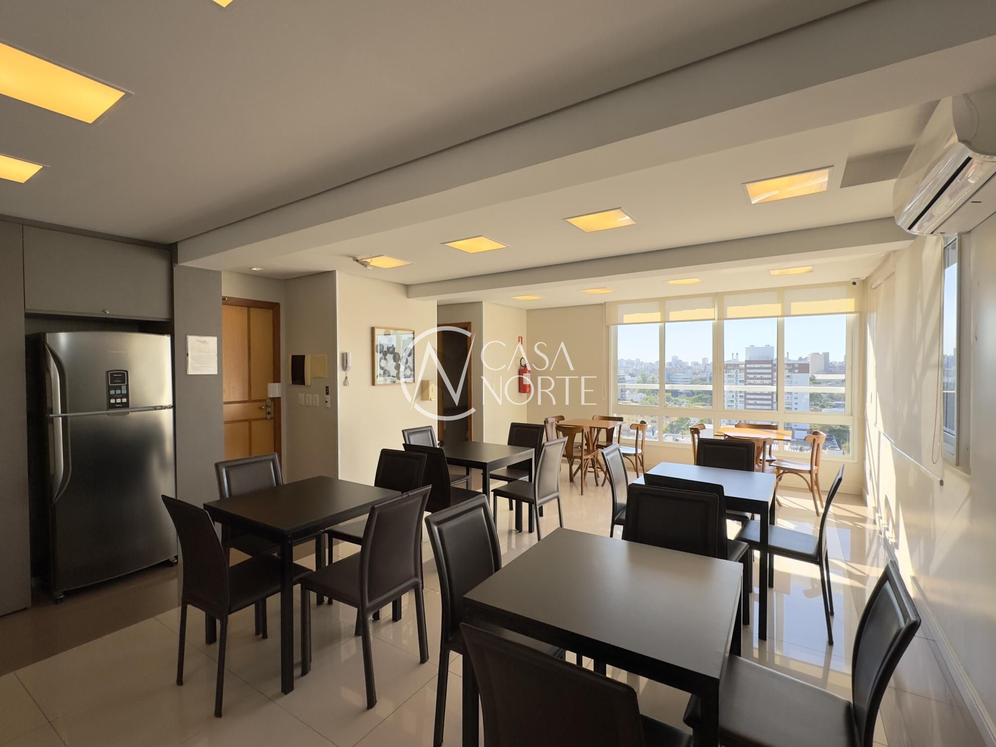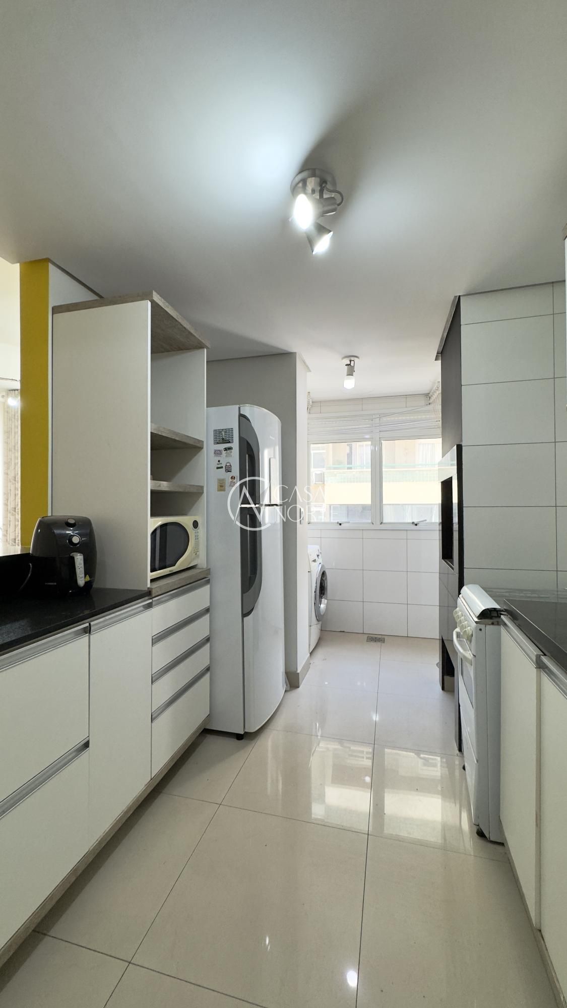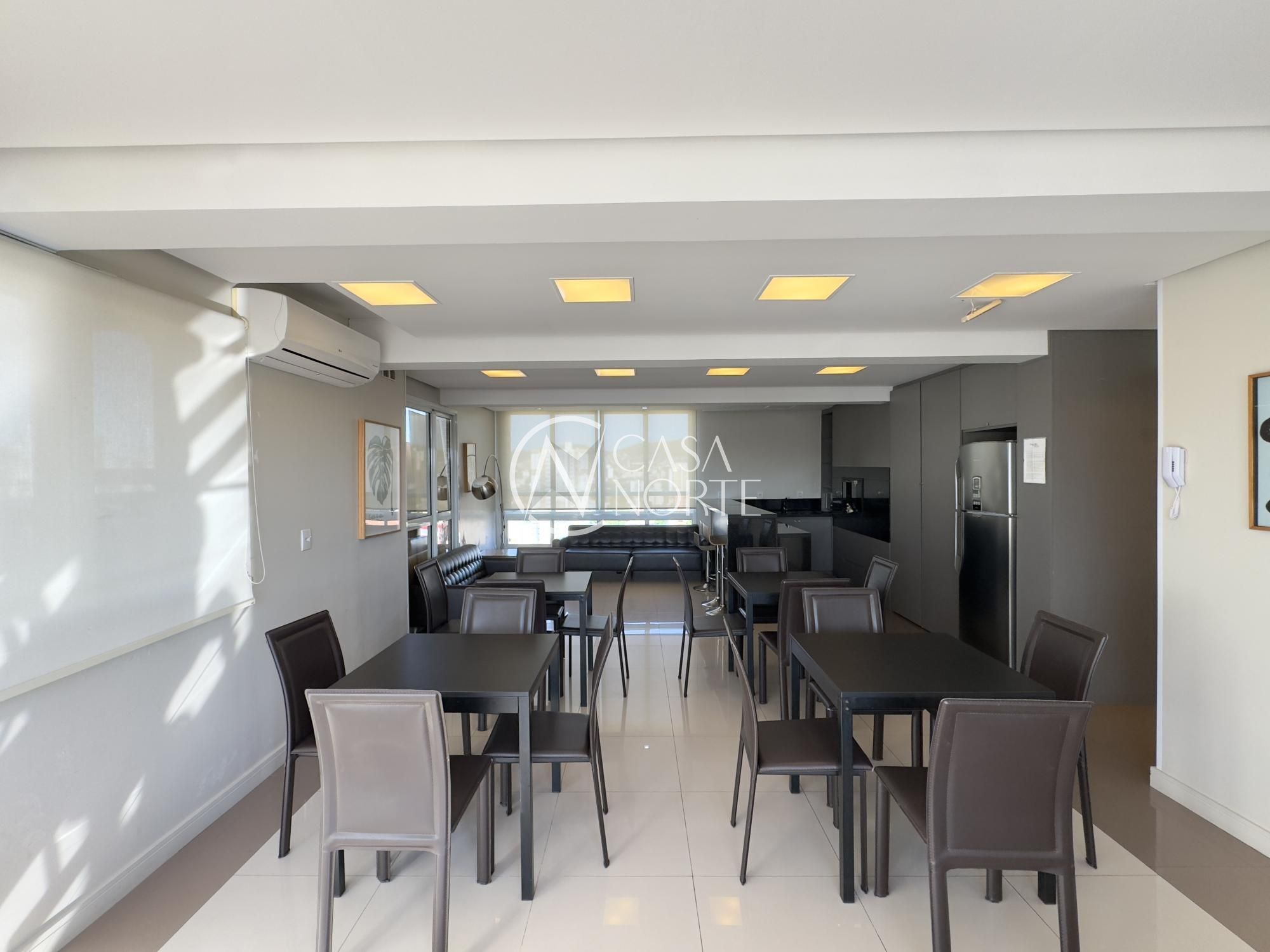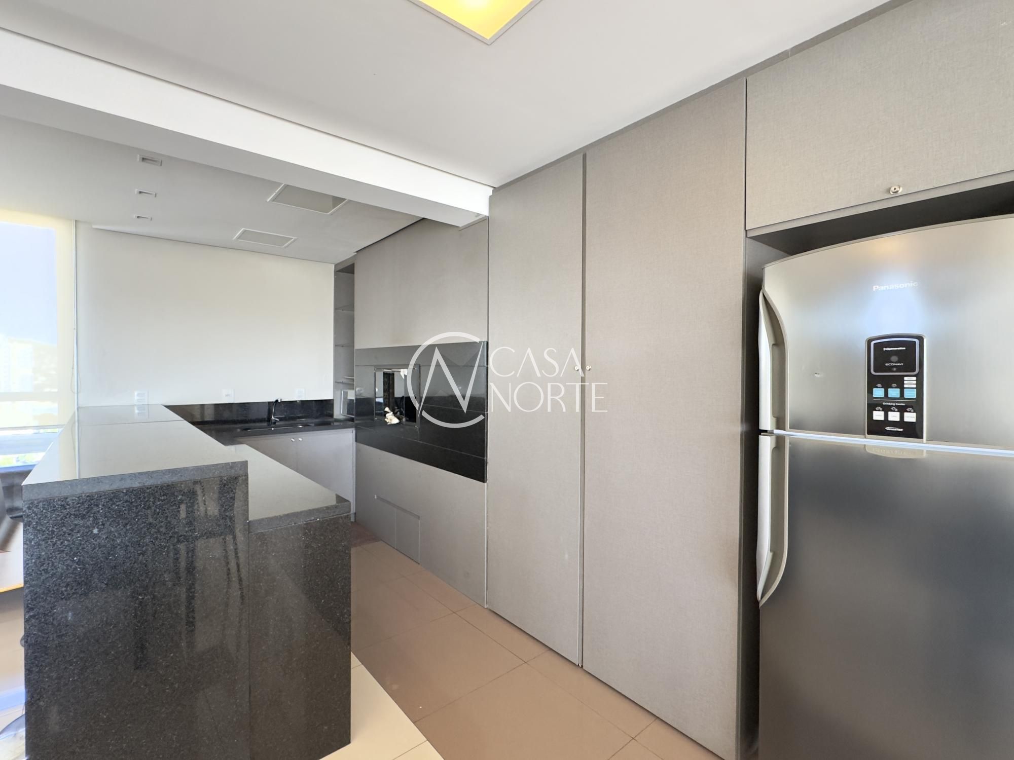 Apartamento semimobiliado de 63m², 2 dormitórios, sendo 1 suíte, living amplo para dois ambientes bem definidos, cozinha americana com móveis sob medida, área de serviço separada, churrasqueira, 1 banheiro social e 1 na suíte, 1 vaga de garagem coberta. Imóvel silencioso, com orientação solar Norte/Oeste e ótima ventilação.