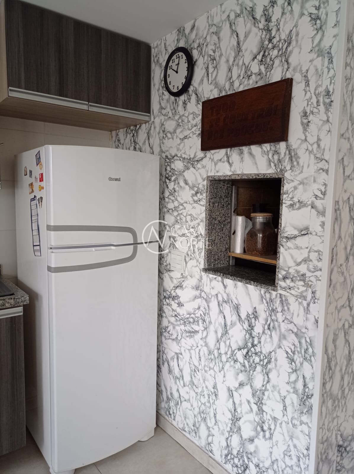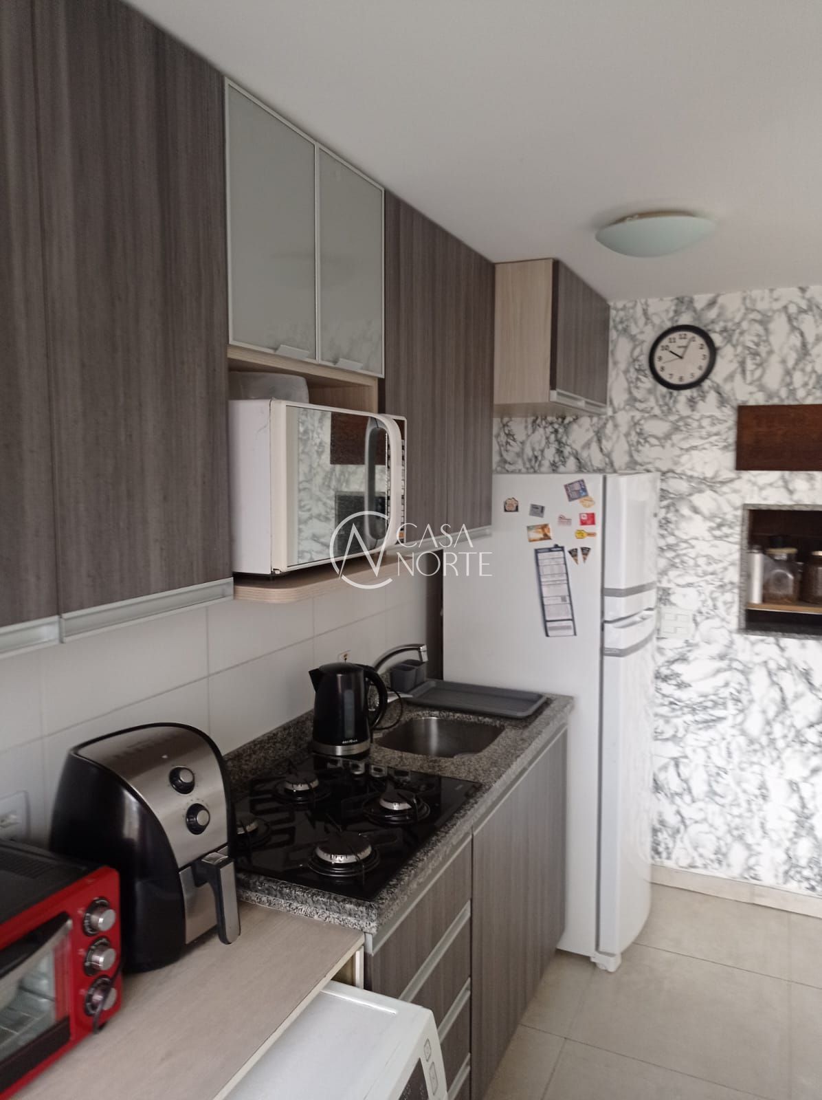 A cozinha conta com móveis sob medida, garantindo funcionalidade e organização, além de possuir churrasqueira privativa, ideal para momentos especiais.