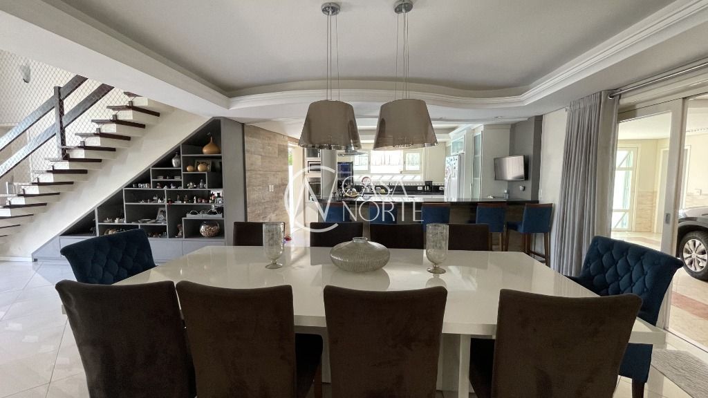 EXCELENTE RESIDENCIA em condomínio fechado com total segurança. Imóvel com living conceito aberto com 4 ambientes, com 4 suítes, lavanderia, lavabo, lareira, churrasqueira, garagem para 5 carros, pátio com piscina terreno medindo 405 m² isso é raridade dentro de condomínio fechado.
