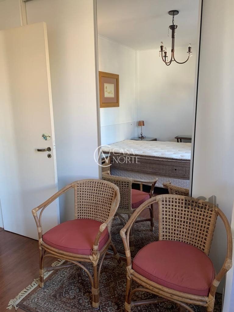 Excelente apartamento de dois dormitórios, de frente, totalmente Mobiliado, com living em laminado com dois ambientes, cozinha montada, ( Geladeira, fogão, lavadora e secadora de roupas, forno elétrico, e churrasqueira, banheiro social, edifício com Elevador e 01 vaga de garagem fixa, dormitórios também completos, e dependência de empregada com banheiro auxiliar, 70,12 metros privativos, agende já sua Visita.